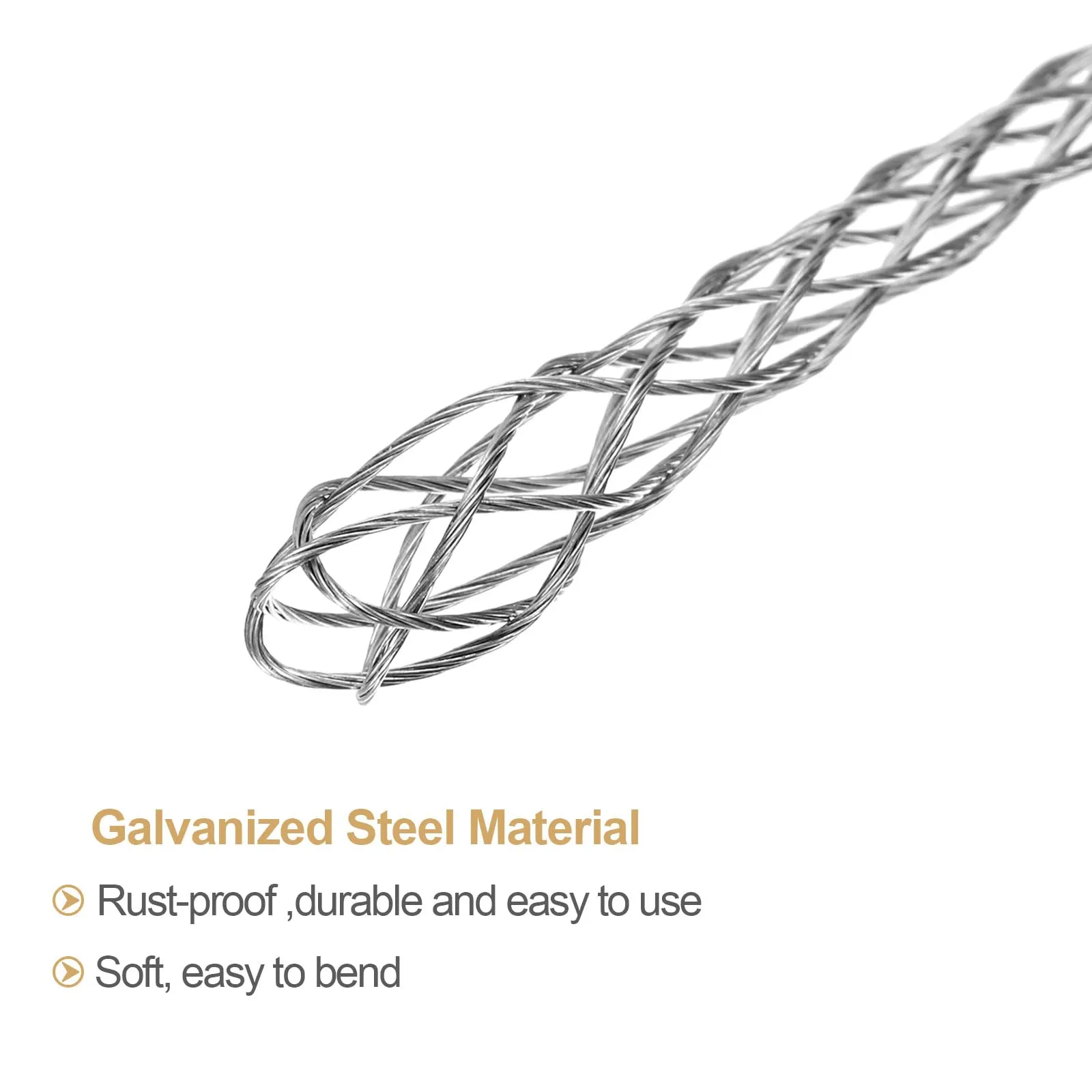 亜鉛メッキ鋼材で作られており、錆びにくく、耐久性があり、使いやすく、柔らかく、曲がりやすいです。シングルプルワイヤーメッシュスリーブの可変メッシュは、グリップを自動的に調整して滑りにくく引っ張り、ケーブルの絶縁体を損傷から保護します。