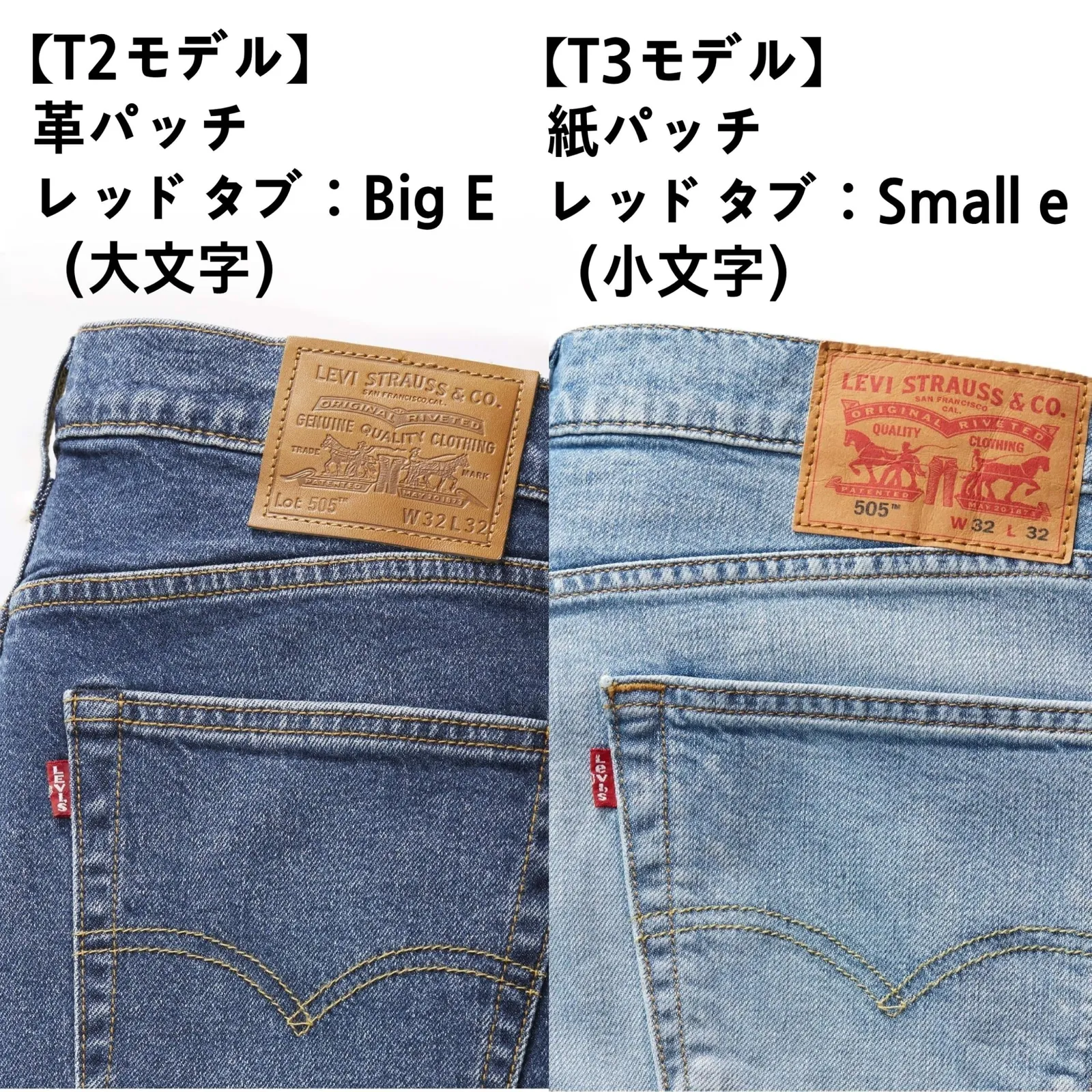 【T2モデル】バックパッチ:革 / レッドタブ:Big E(大文字E)リーバイスのレッドタブシリーズ