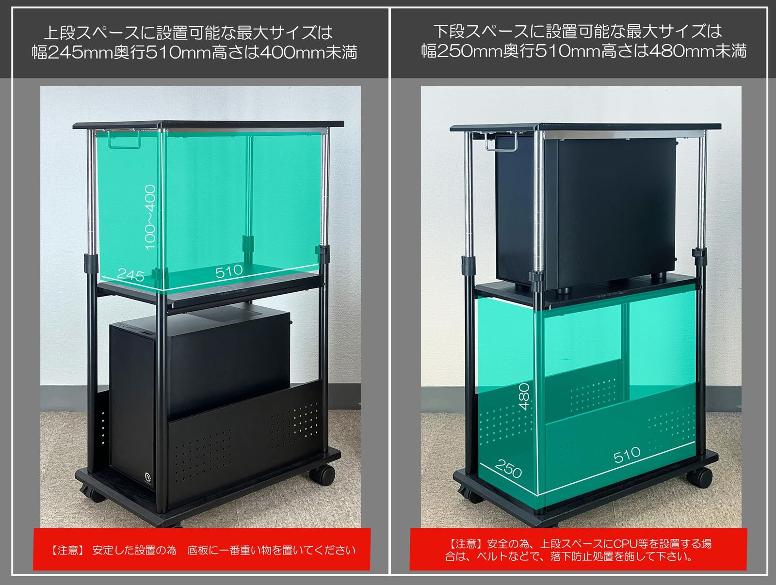 ゲーミングPCなどの設置やデスクの拡張などとしてご利用いただけます。
