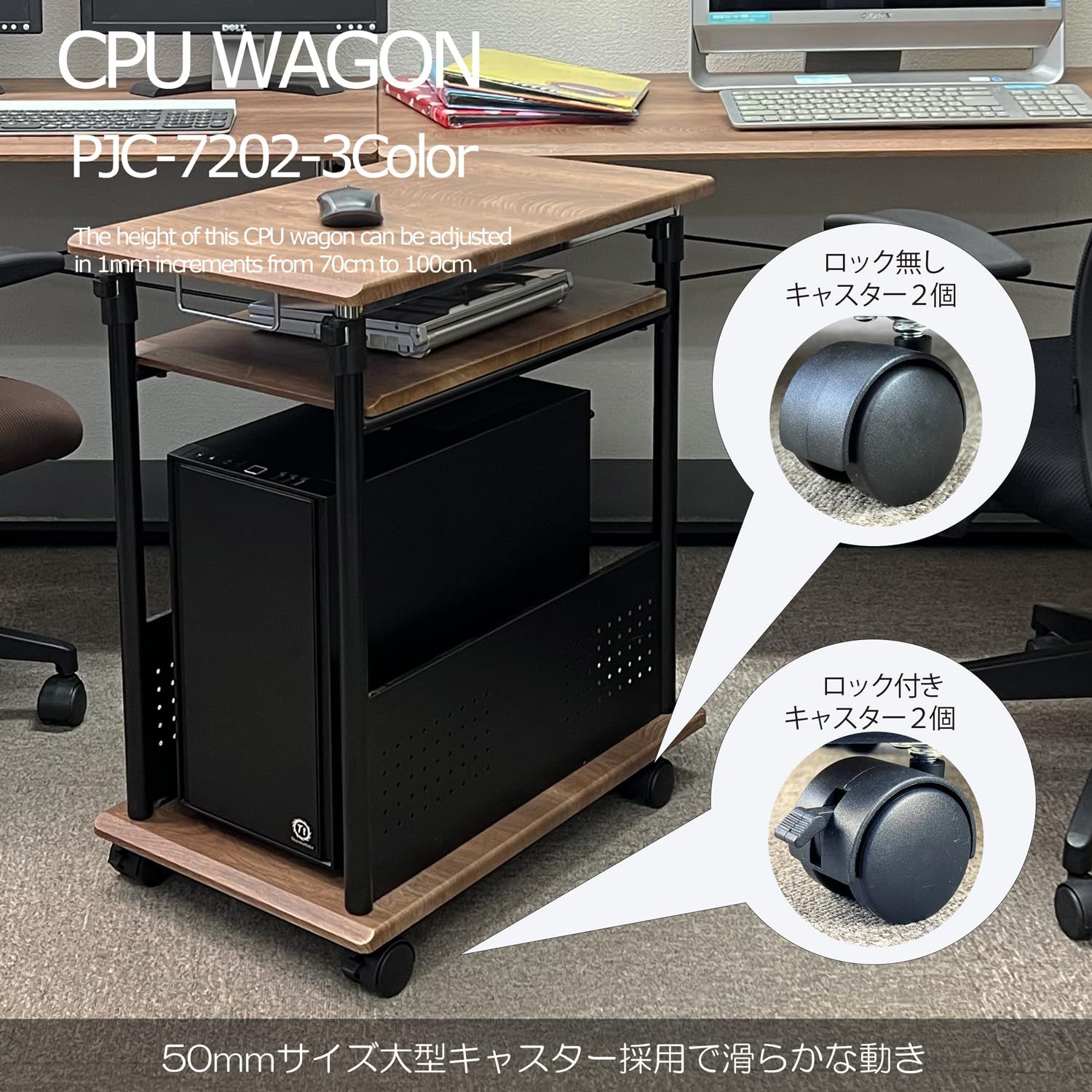 *:デスクサイドで便利に使用できる高さ調整可能なCPUワゴン・パソコンワゴン・デスクサイドワゴンです。