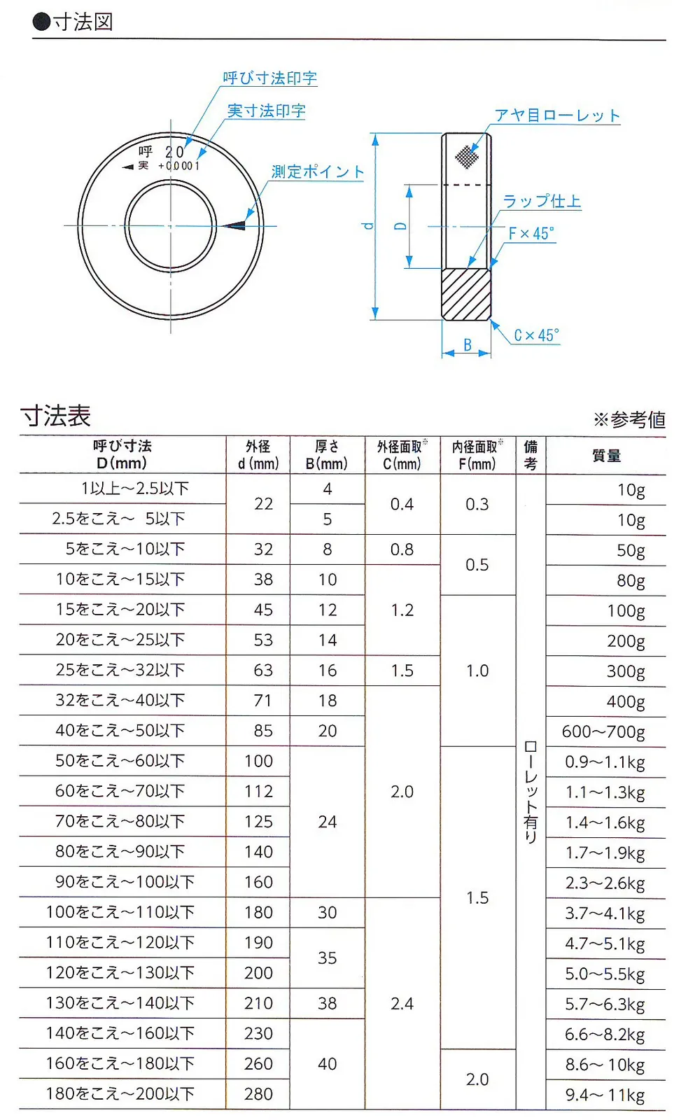 内径測定器のマスター。全製品サブゼロ処理、安定化処理済、ラップ仕上。リングゲージはホールテスト、シリンダーゲージ、内側マイクロメータ、ダイヤルキャリパ、内径測定器、内側ダイヤルコンパレータなどのマスタゲージとして446点調整をするときに使用します。
