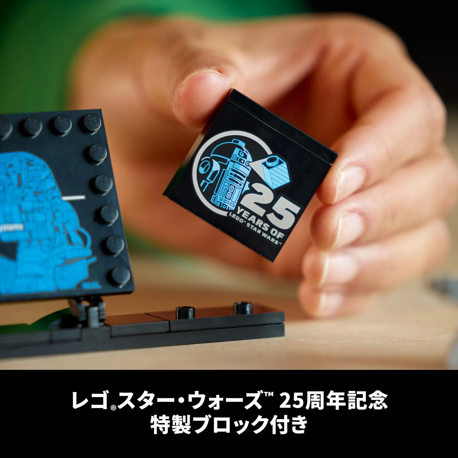 25周年記念モデル ? 専用スタンドをはじめ、「ドロイデカ」のフィギュア、「ドロイデカ」のデータを記した情報プレート、レゴスター・ウォーズ 25周年記念ブロックが付属