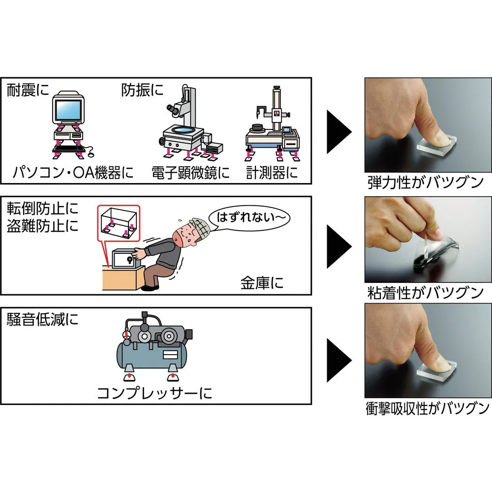 ●超弾力性と優れた粘着性で、上下、左右、前後のあらゆる揺れに対応します。