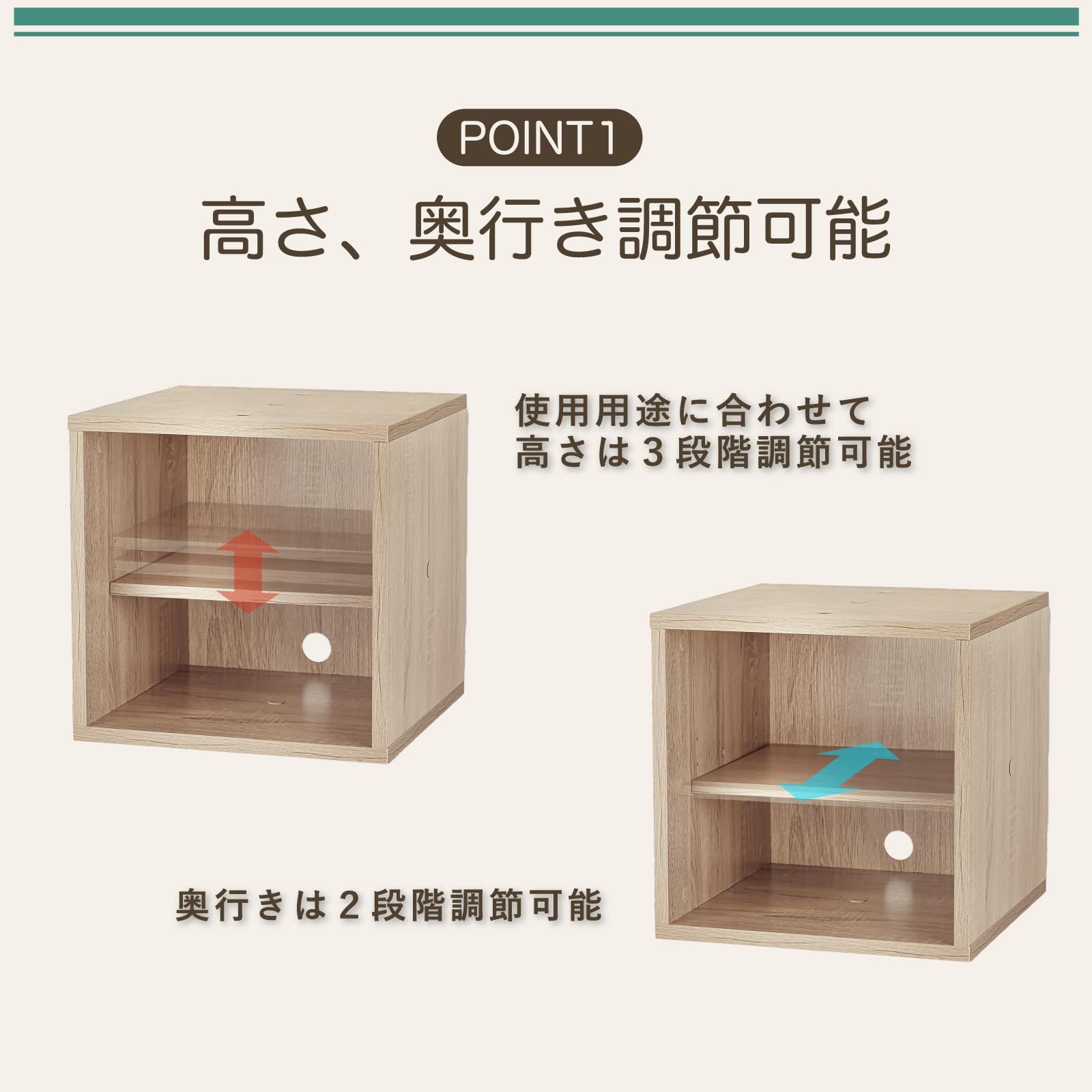 棚板:奥2段階、高さ3段階調整可