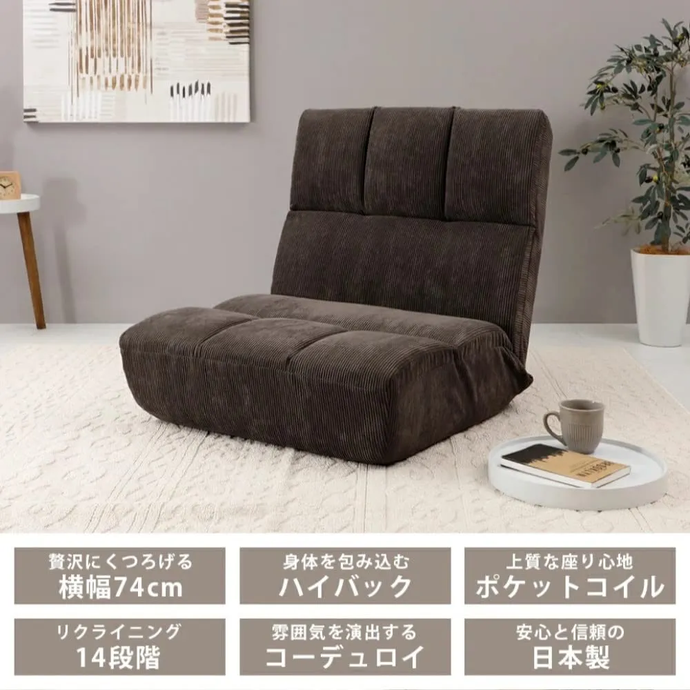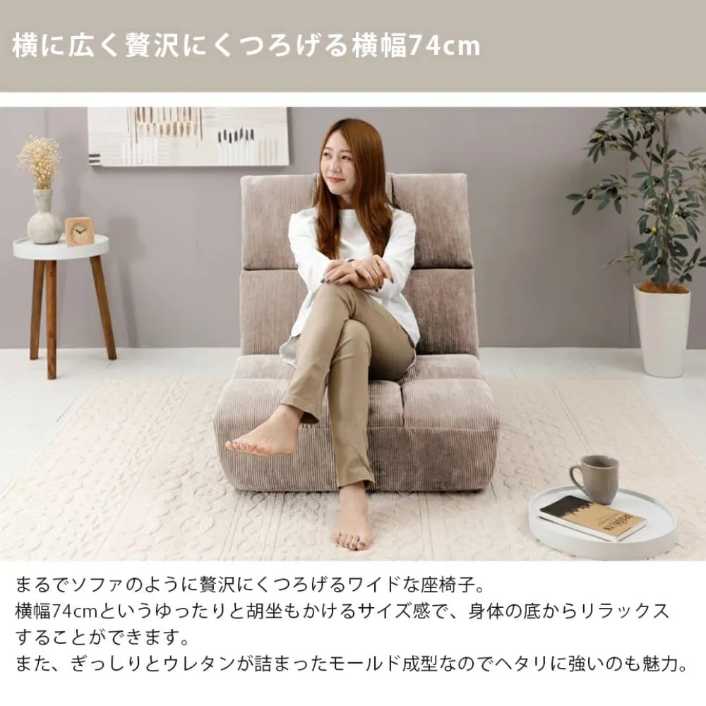 カラー:05コーデュロイグレー 横に広く贅沢にくつろげるワイド74cm仕様。身体を包み込むハイバックタイプ。