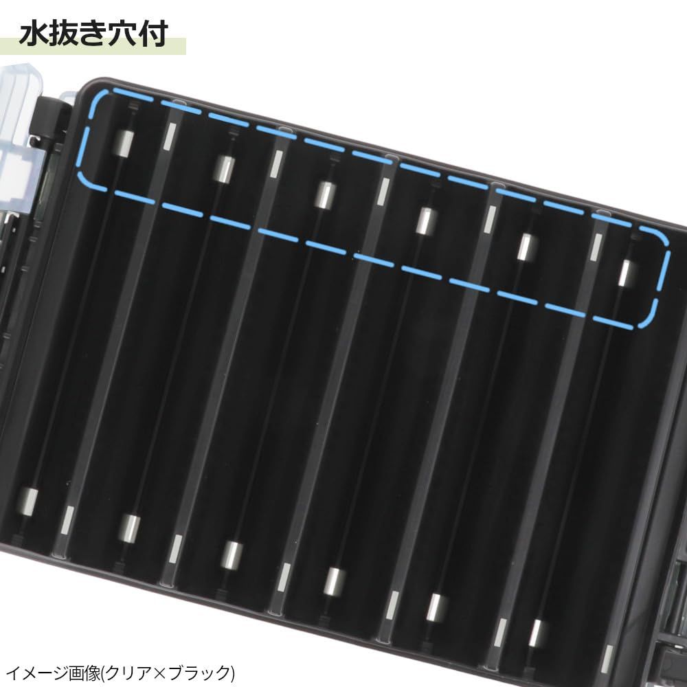 明邦化学工業とのコラボ、リバーシブルシリーズ。対面トライアングル構造でスペースを効率的に使用できる両面収納タイプのタックルケース!90mm程度のプラグや小型のエギ・スッテ、40g程度のメタルジグの収納に!フックを付けたままでも絡みにくく、使用後はボックスごと丸洗い可能な水抜きダクト付き。