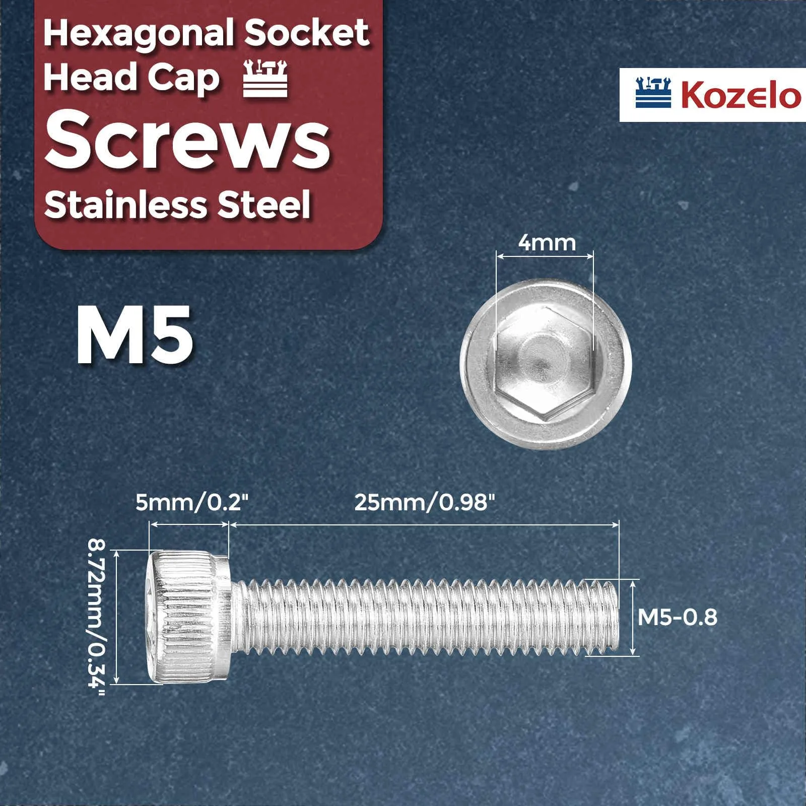 パッケージ内容:六角穴付きボルト50本、ねじサイズ:M5-0.8;ねじ長さ:25mm/0.98;ヘッド直径:8.72mm/0.34;ヘッド厚さ:5mm/0.2;六角幅:4mm;スパナやレンチでは作業が難しい狭い箇所での締付けに適したキャップボルトです。