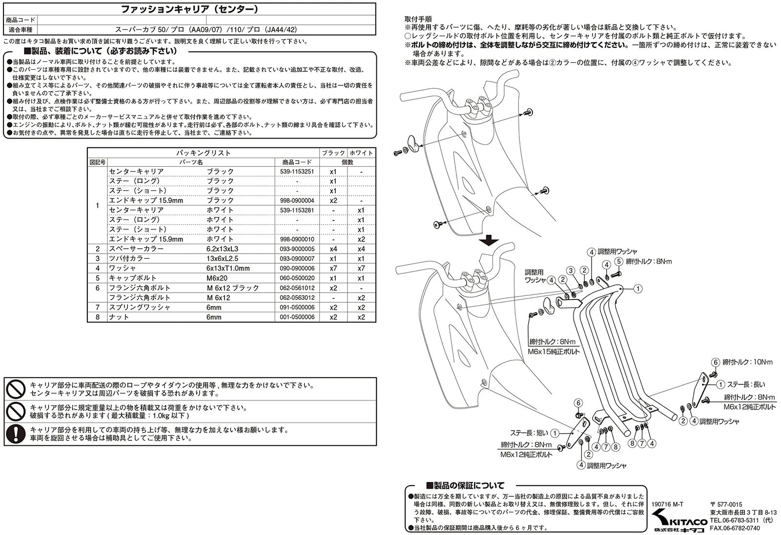 適合車種 スーパーカブ50:AA09全車種 | スーパーカブ50-プロ:AA07全車種 | スーパーカブ110:JA44全車種/JA59全車種 | スーパーカブ110-プロ:JA42全車種