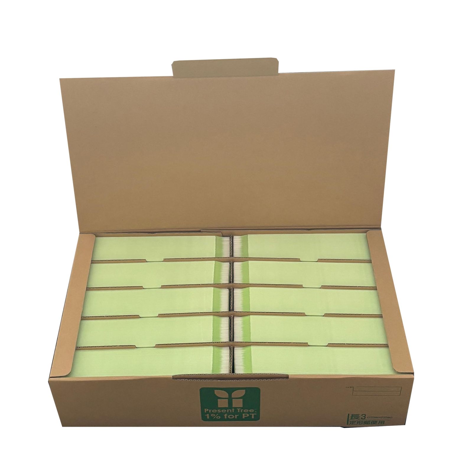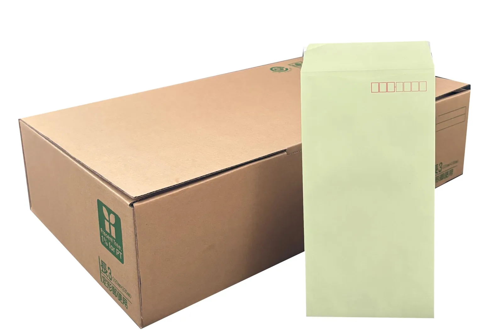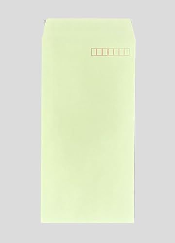 郵便枠付きのカラー封筒です。さわやかな若草色。封緘しやすいテープ付きとなっております。
