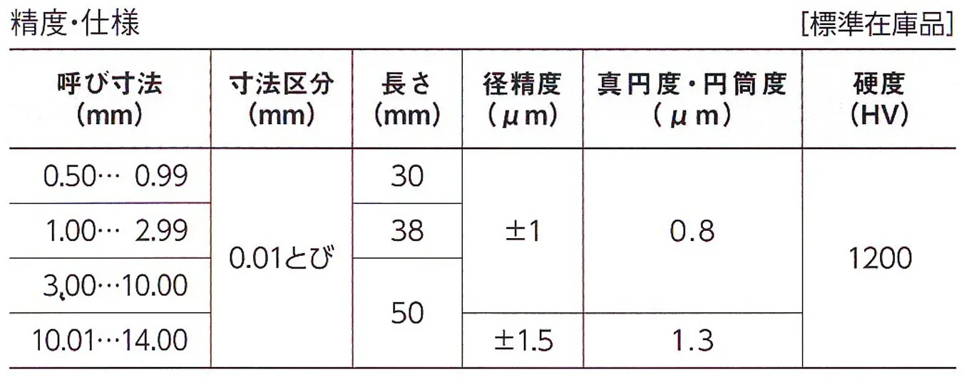 真円度・円筒度(μm) : 0.8