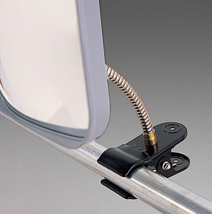 鏡面材質:ガラス(鏡面飛散防止加工)、重量(g):800^取付可能サイズ:パイプ:φ20~60mm、板厚:10~60mm^フレキシブルシャフトサイズ:φ15.9×200mm^サイズ(mm):310×230^曲面:600R