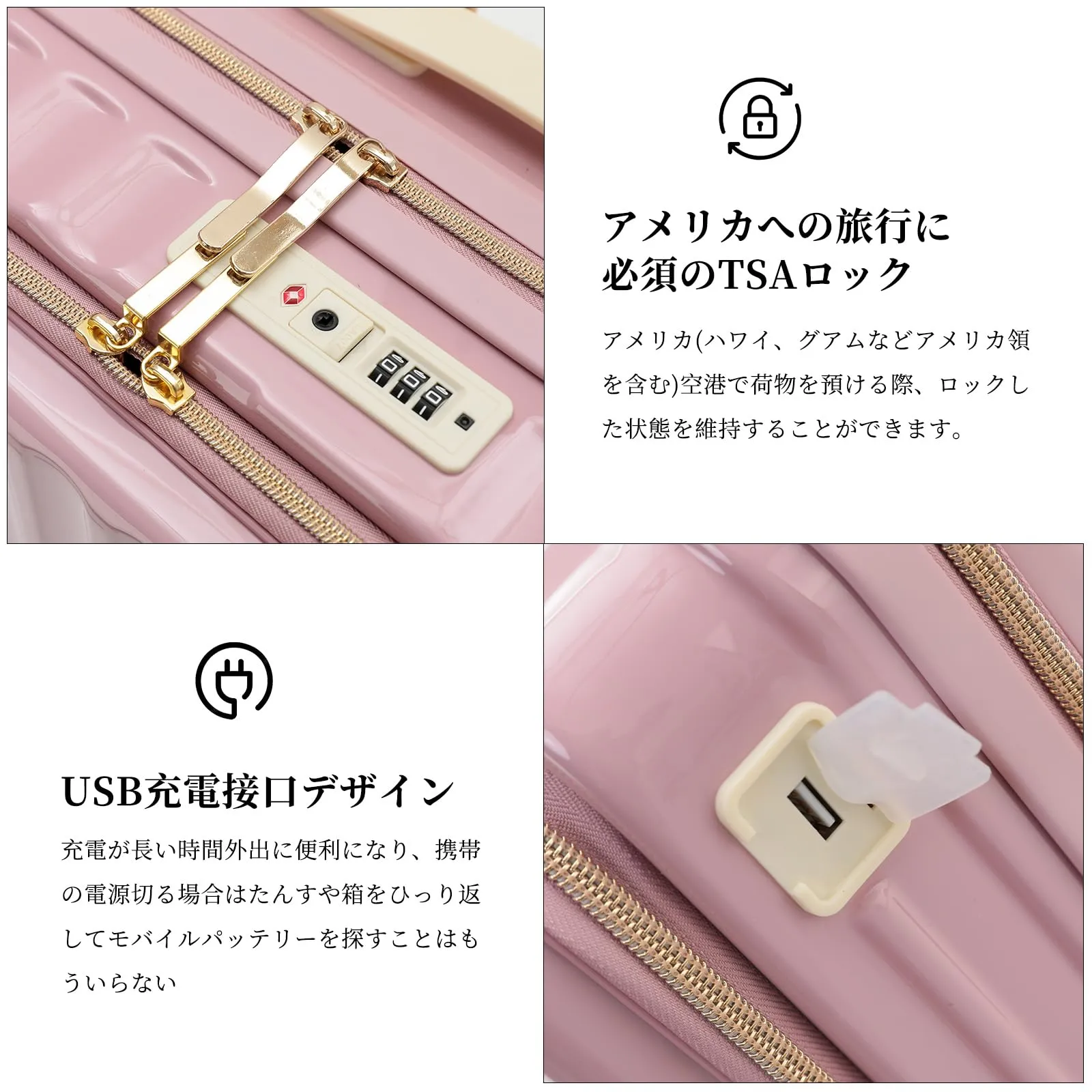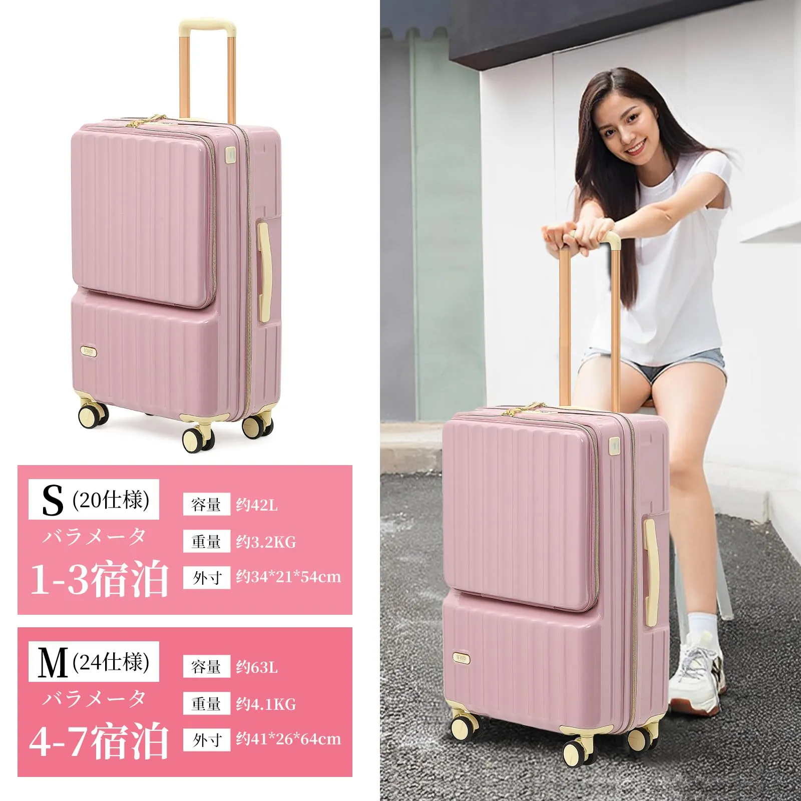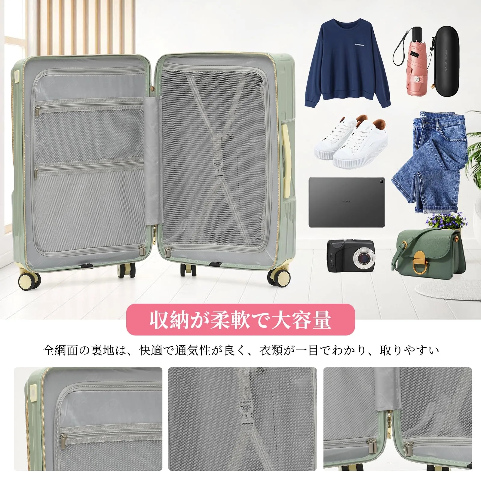 【便利と軽さ】新幹線や飛行機に乗るとき、いつでもスーツケースの前蓋を開けて必要なものを取り出すことができます。20インチの重さは約3.8kgですが、超軽いスーツケースです。サイズ:54*37*23((含?)