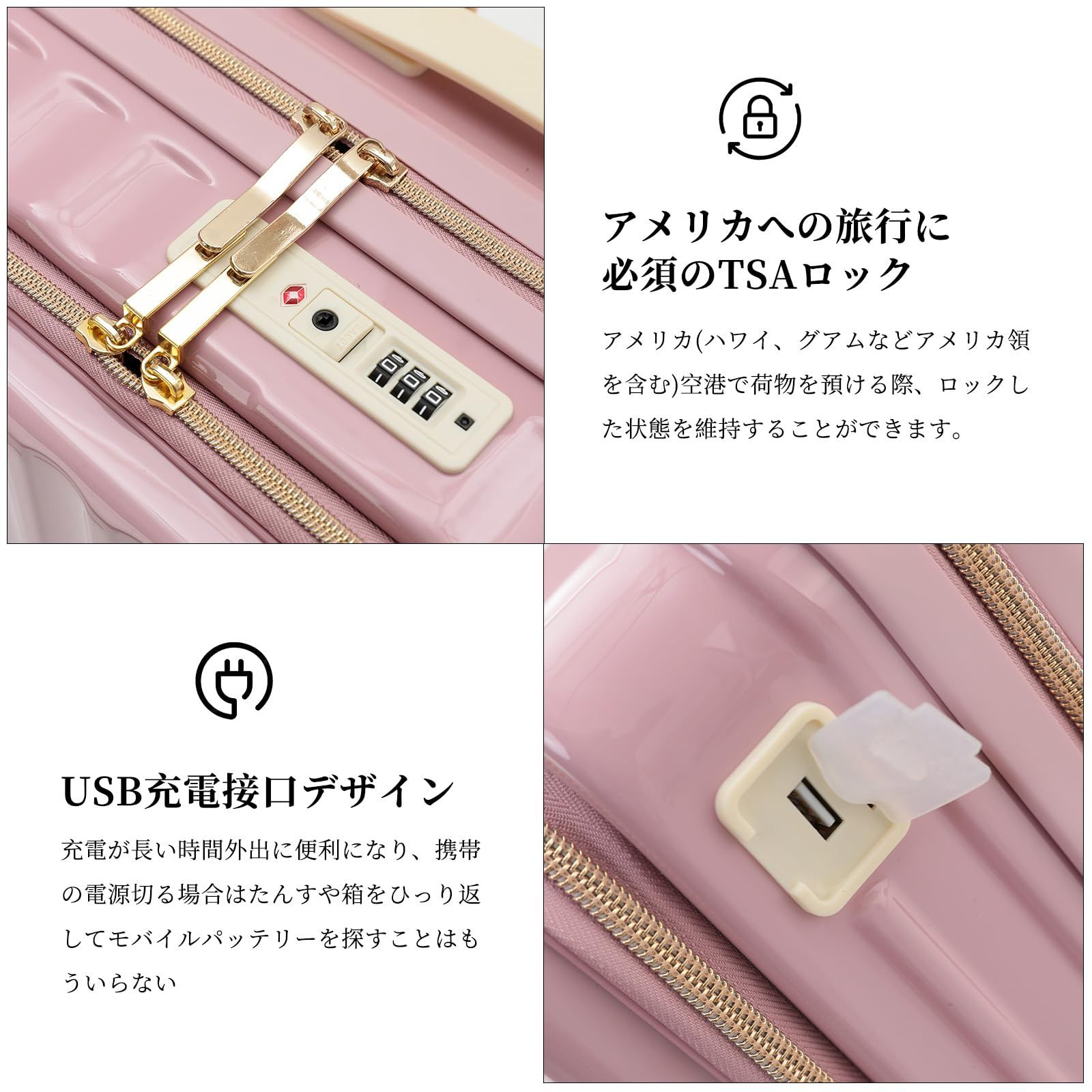 【TSAロックと 移動式USBポートある】TSAダイヤル式ロックが搭載されて、外出がより安全。また、鍵穴は航空会社検査専用の物です。本製品に鍵は付属しておりません。スーツケースはUSB充電ポートがあり、旅行中でもいつでも充電できます。また、充電ポートには防水カバーが付いているので、雨の日の旅行でも心配する必要はありません。