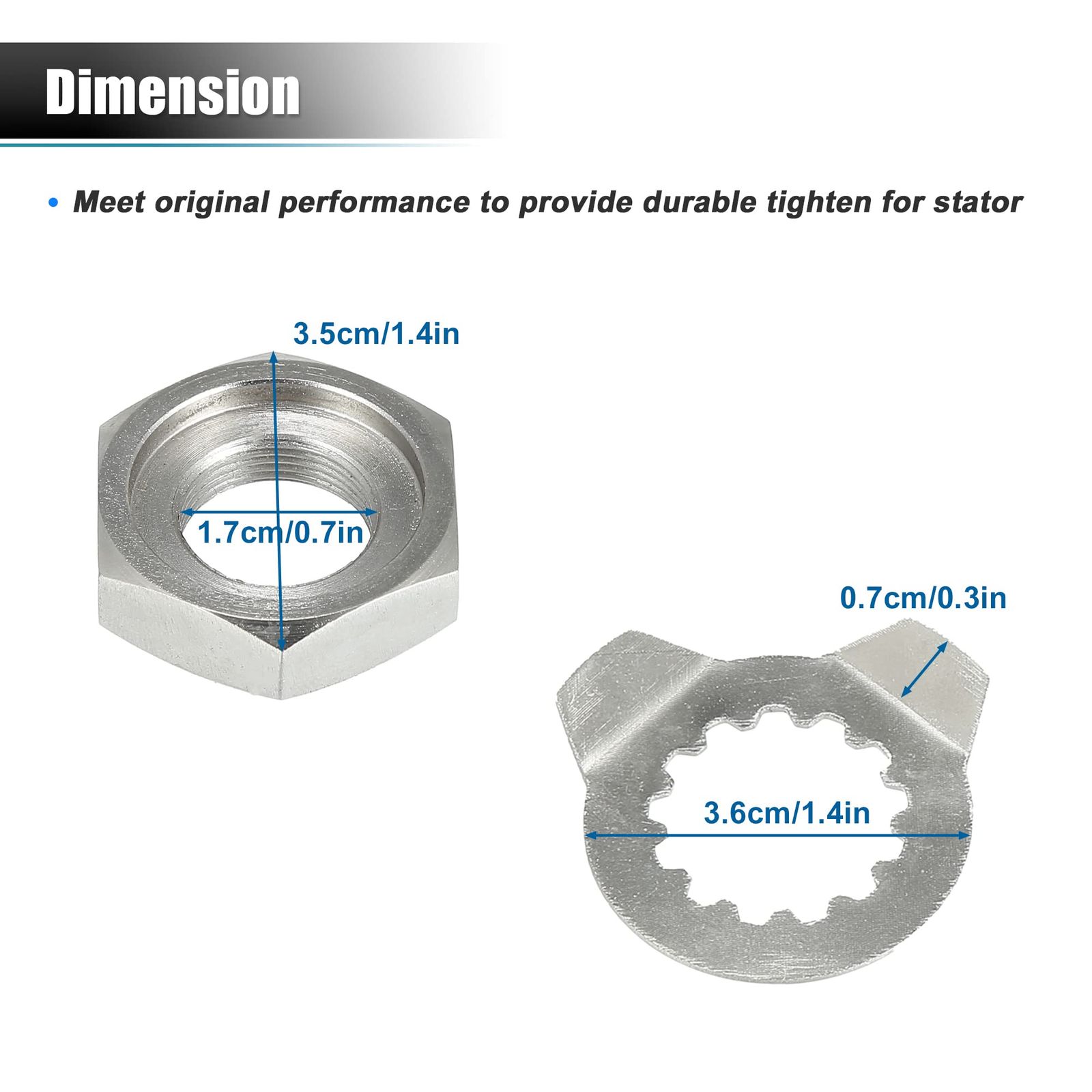 【パッケージ】含まれるもの: 1x フロントスプロケットホルダーロックナット, 1x ボルトワッシャー。フライホイールとステーターを取り付ける際の専門的な交換方法については、関連するビデオを確認してください。