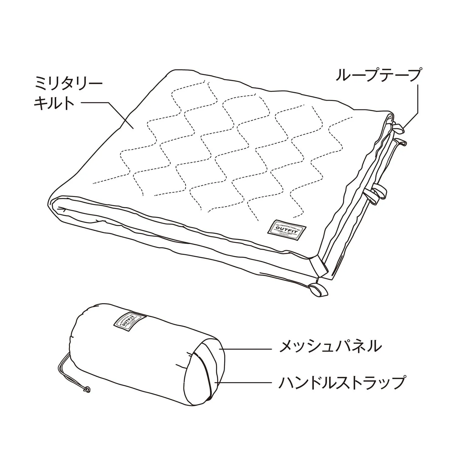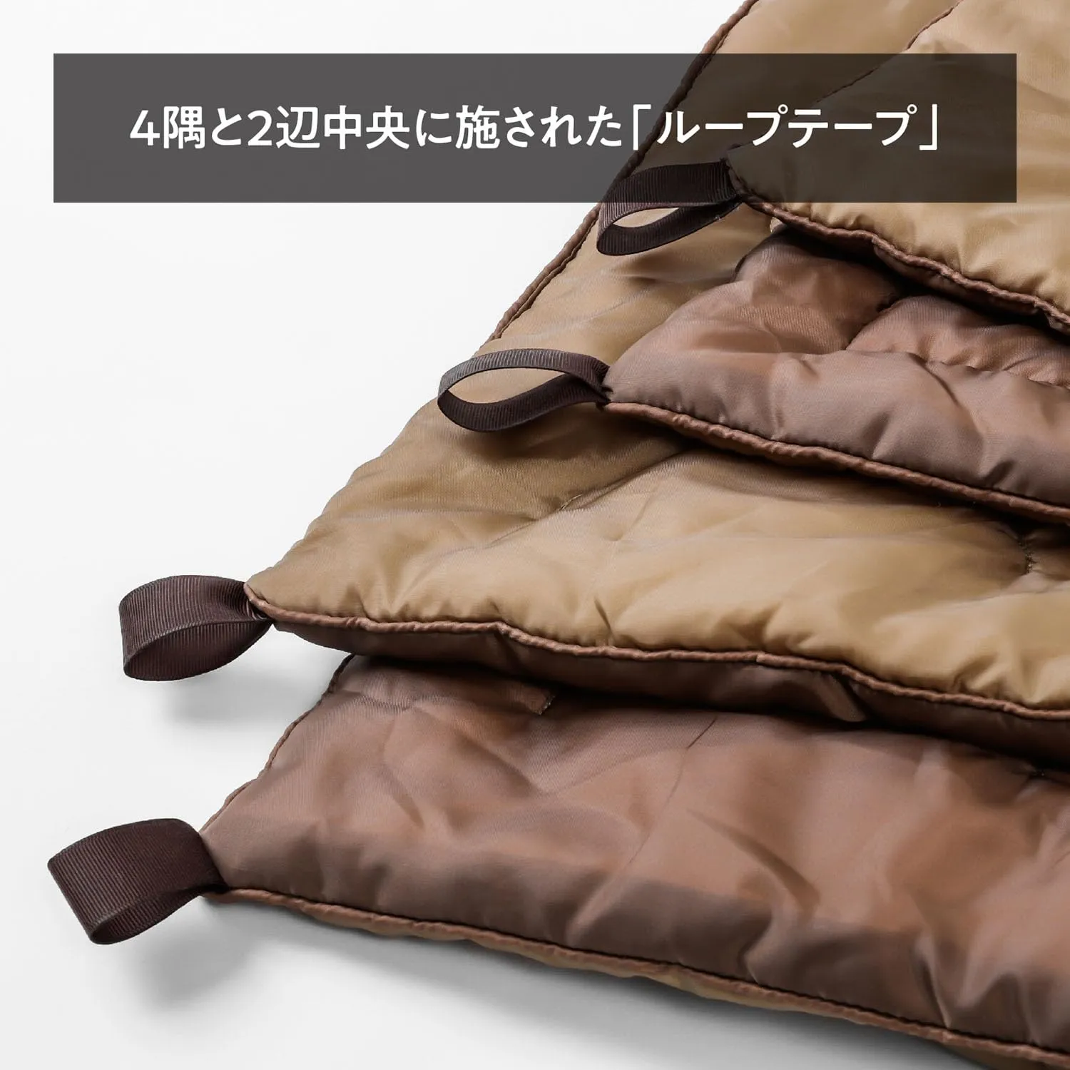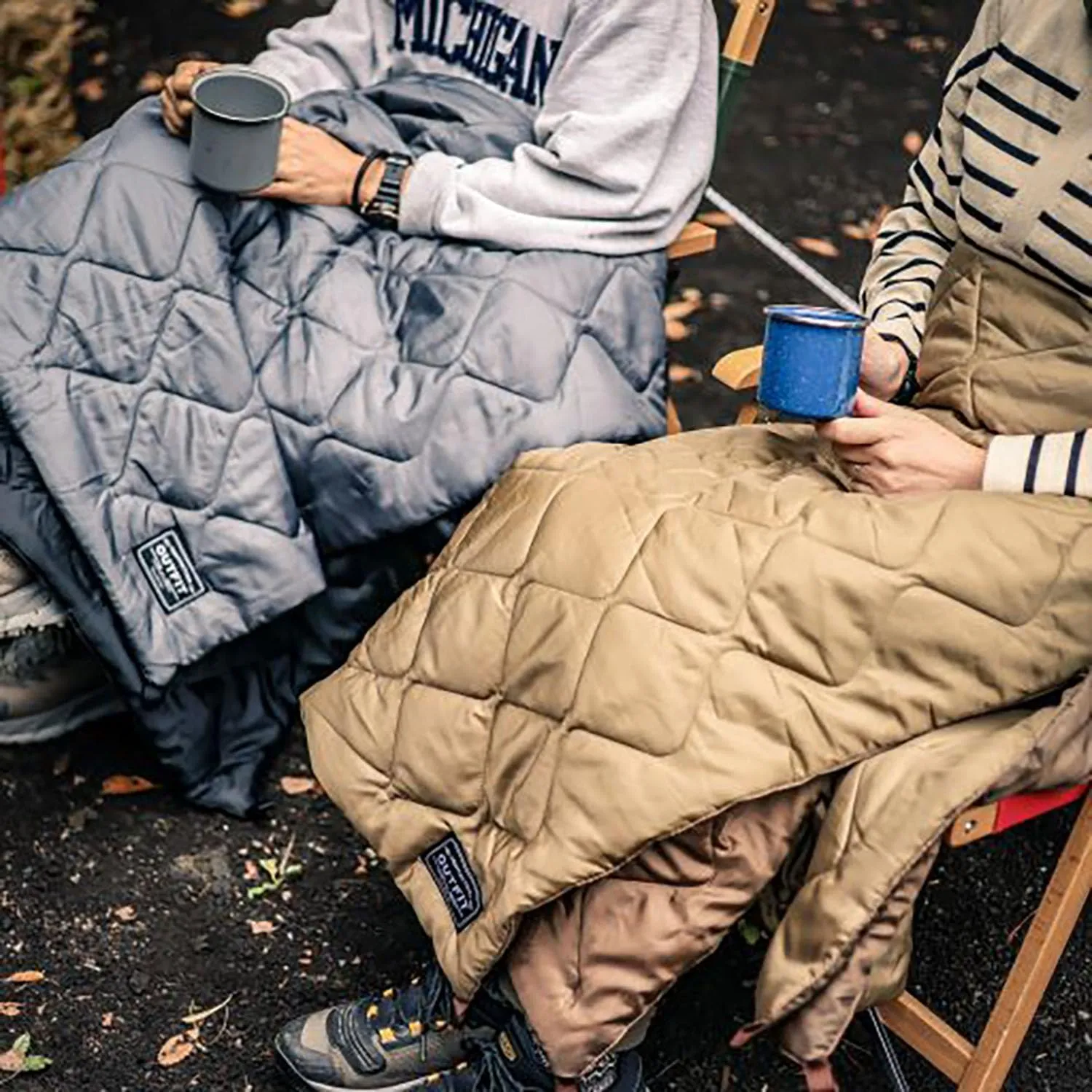 軽量で保温性に優れたポリエステル中綿を使用したキャンプ向きのキルティングブランケット。