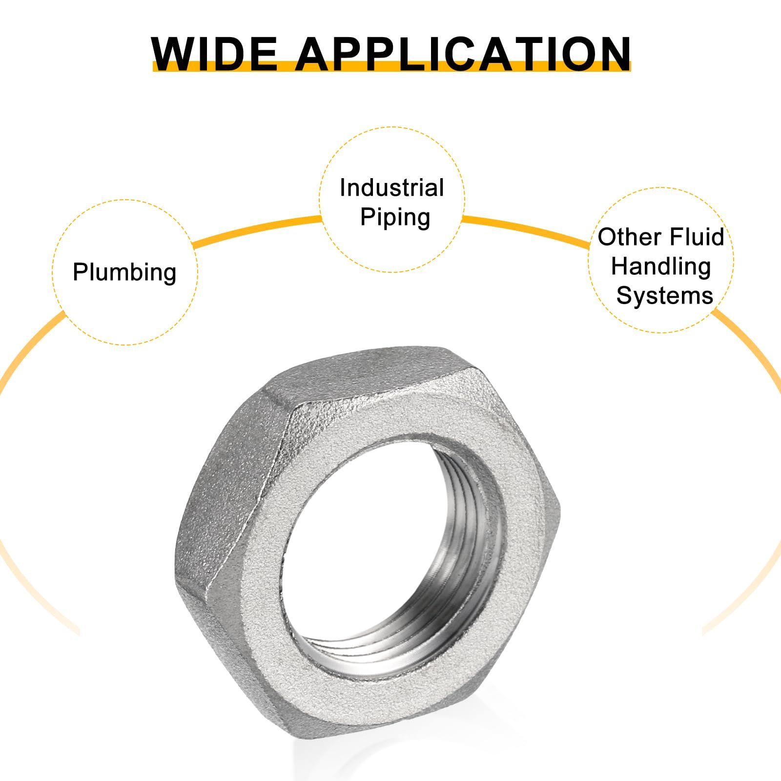 幅広い用途: このロックナットは、配管、産業用配管およびその他のりゅうたい処理システムでさまざまな用途に適しています。信頼性の高い漏れにくい接続が必要な住宅や商業施設で使用できます。