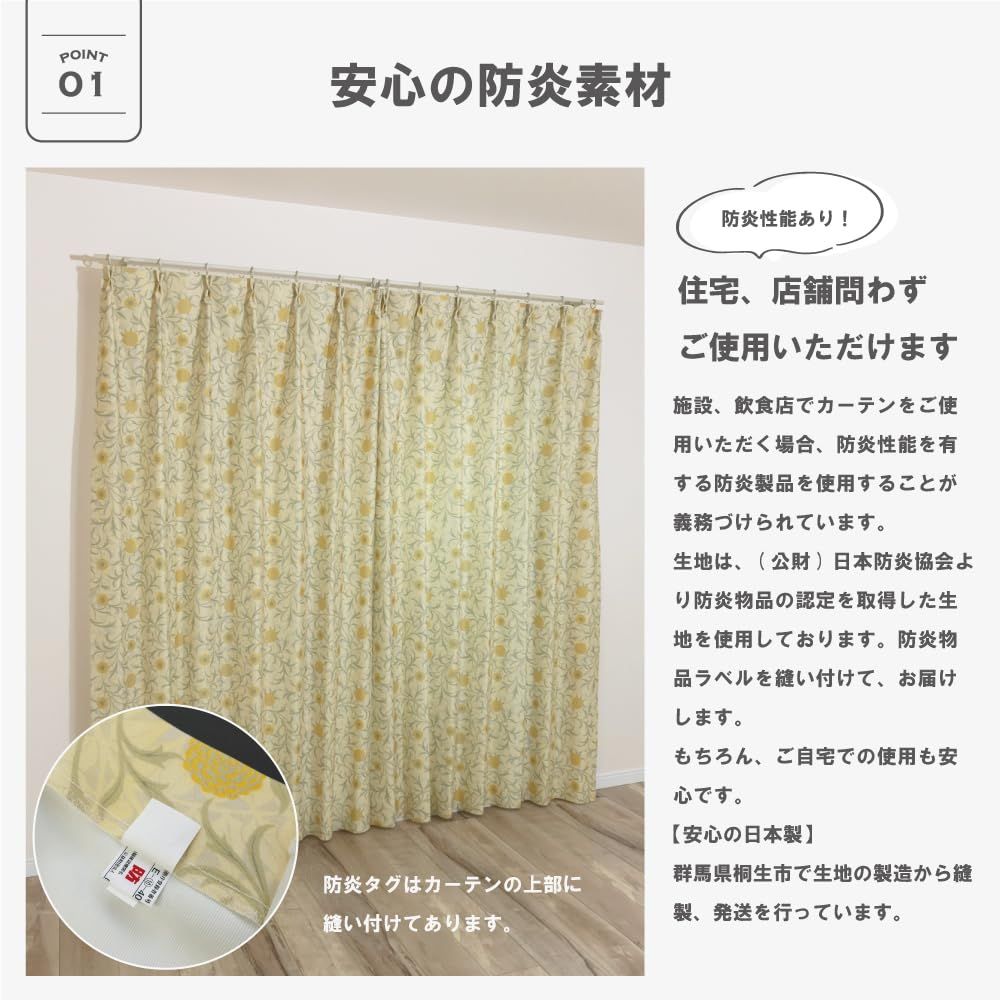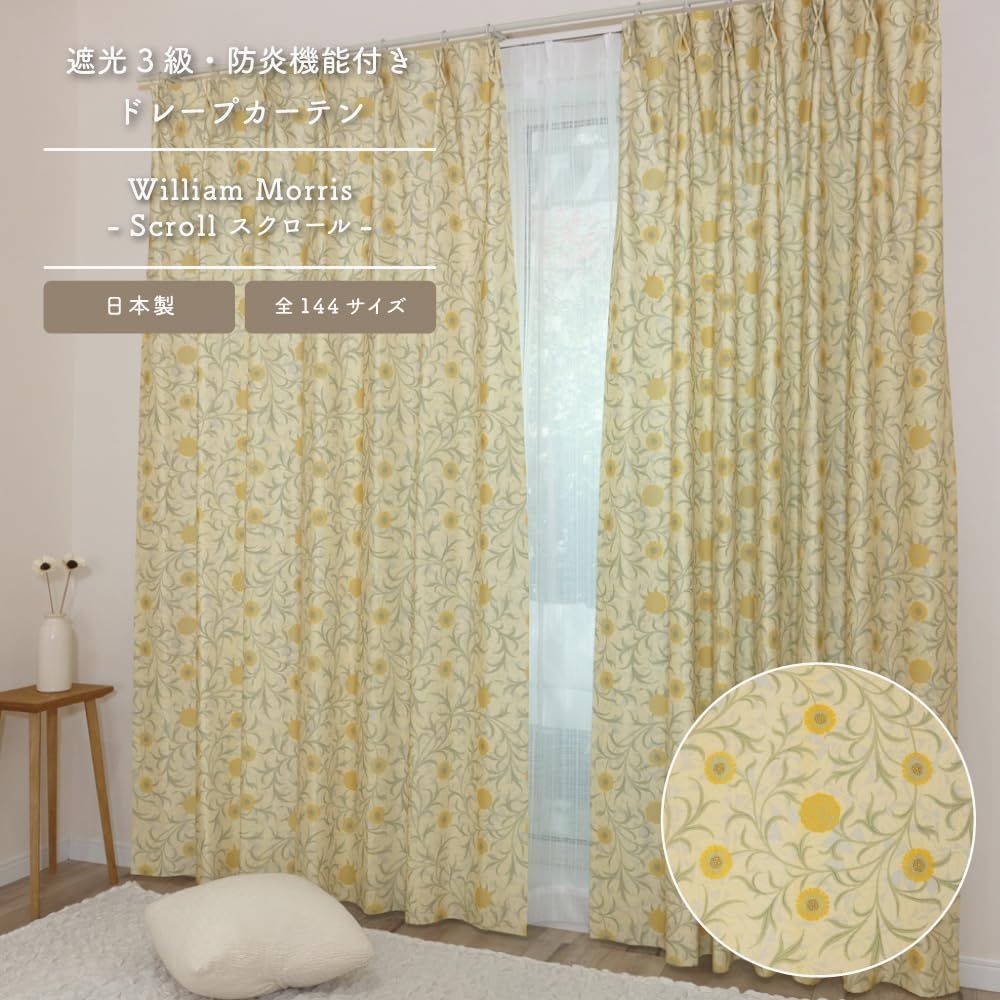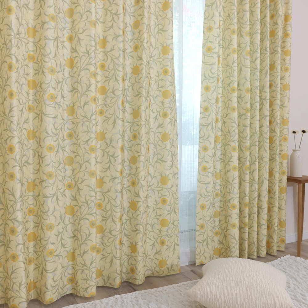 【スクロール】。モリスは若い頃から、ゴシック式の建築や中世時代の文書に興味を持っていました。このデザインは中世時代の彩色された写本からインスピレーションを得ています。 特殊な編み機で生地を製造しているので、サイドと裾は無縫製が可能になり、裾がだぶつかずに自然なドレープ感を生み出すことができました。 3級遮光、防炎、遮熱、保温はもちろん、ご家庭の洗濯機でお洗濯できる多機能なカーテンです。また、無縫製のサイドと裾はお洗濯してもほつれません。 生地の製造、染色加工、縫製と一貫した国内生産。安心安全なこだわりの製品です。 カーテンと同じ柄のタッセルと調節可能なアジャスターフックが付いています(洗濯の時はフックを外してください)。