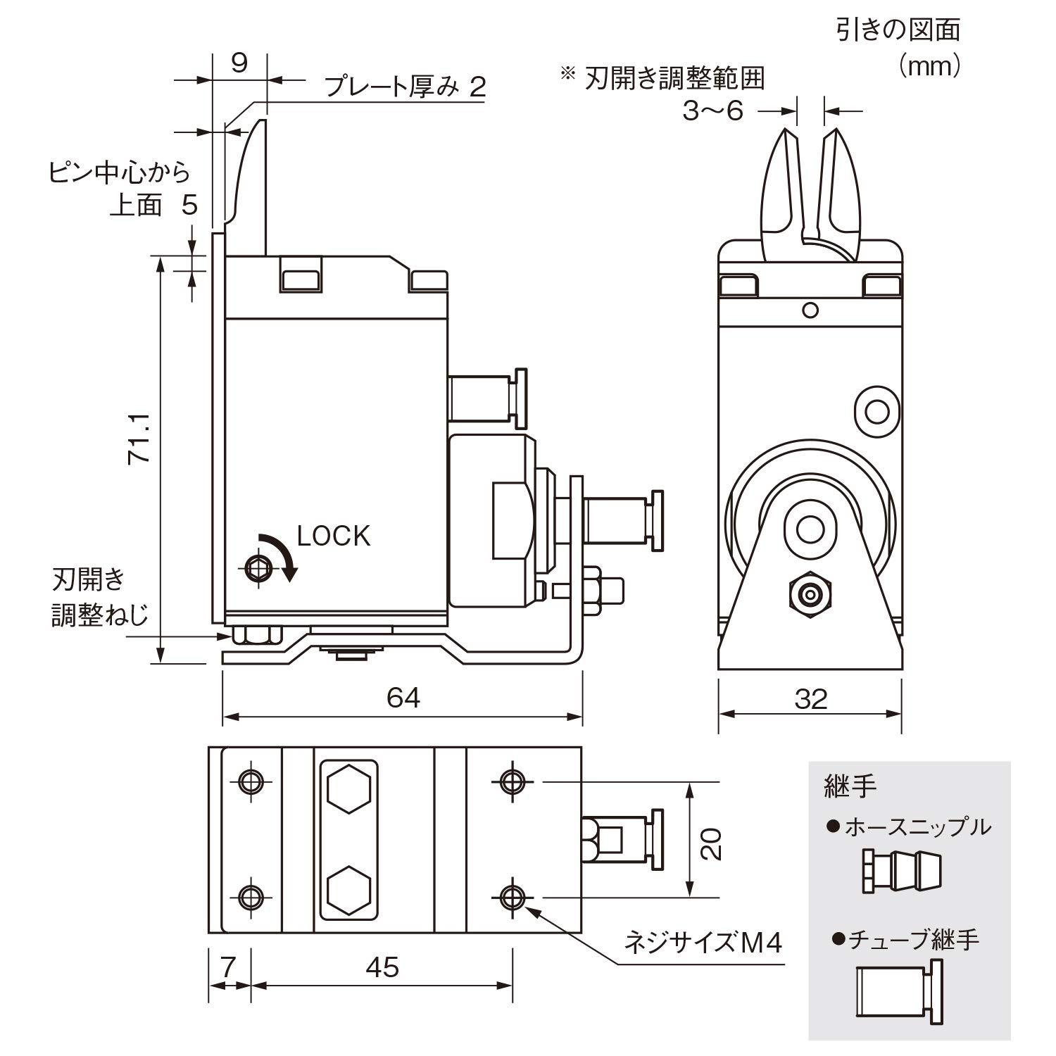 ホース取付口仕様:チューブ継手付