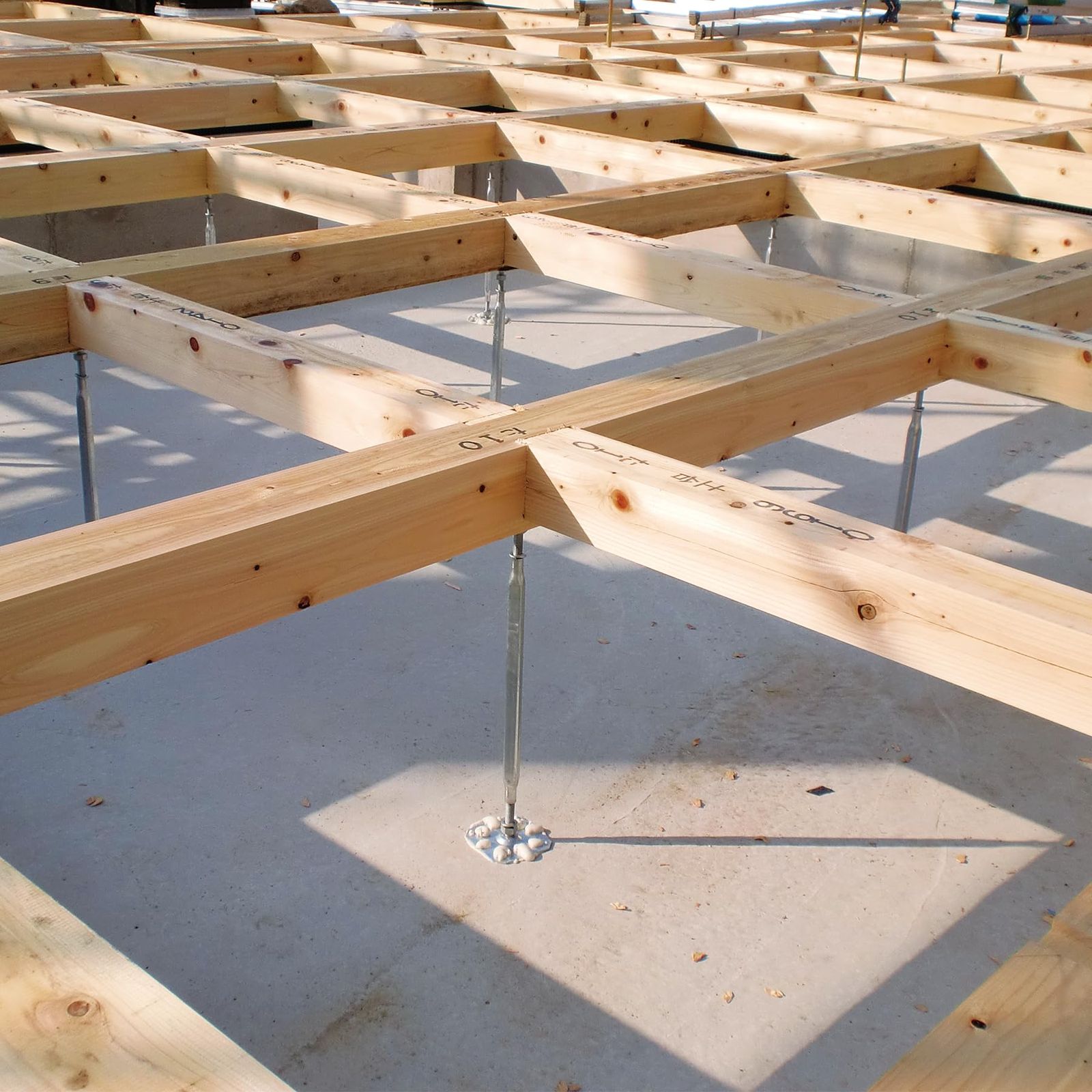 木造住宅の大引と基礎の接合及び支え(高さ調整時のスパナサイズ:19㎜)