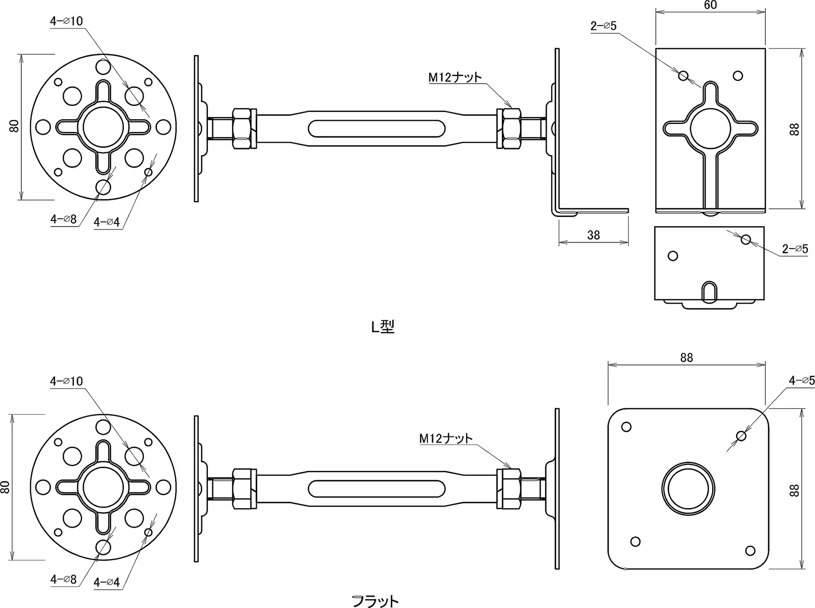 施工のしやすいL型タイプ。L型座面が左右対称に取り付ける事をお勧めします。