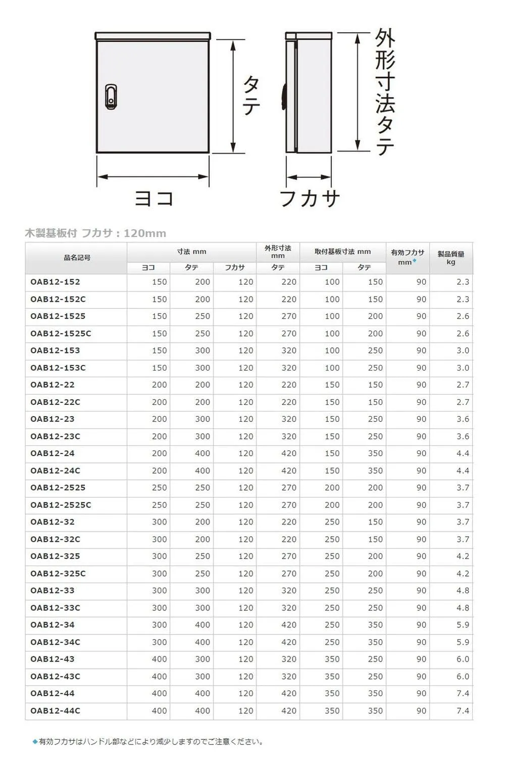●有効フカサ(mm):90