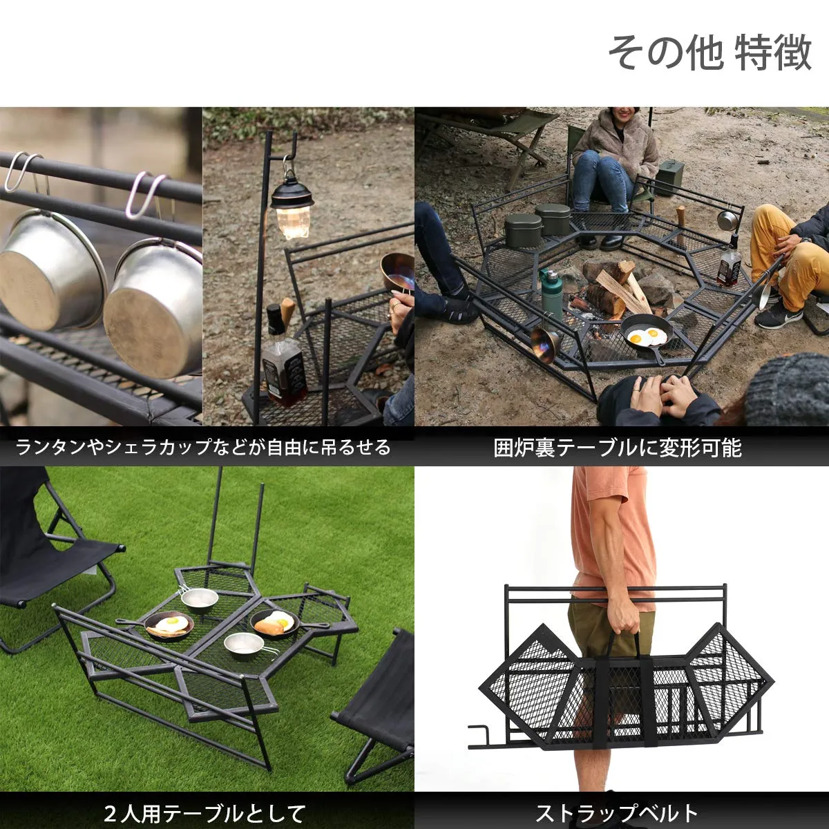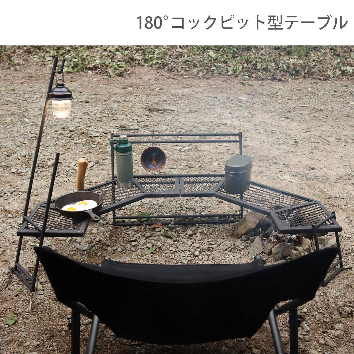テキーラ180を2セットとテキーラレッグLを追加購入して組み合わせると、キャンプ用囲炉裏テーブルとして使うことができます。