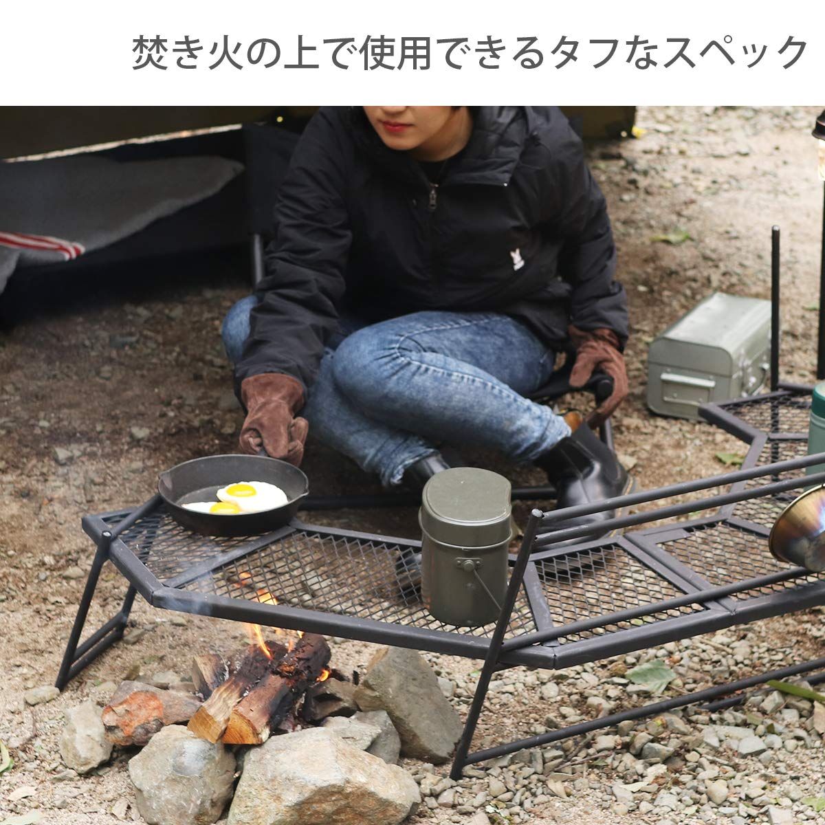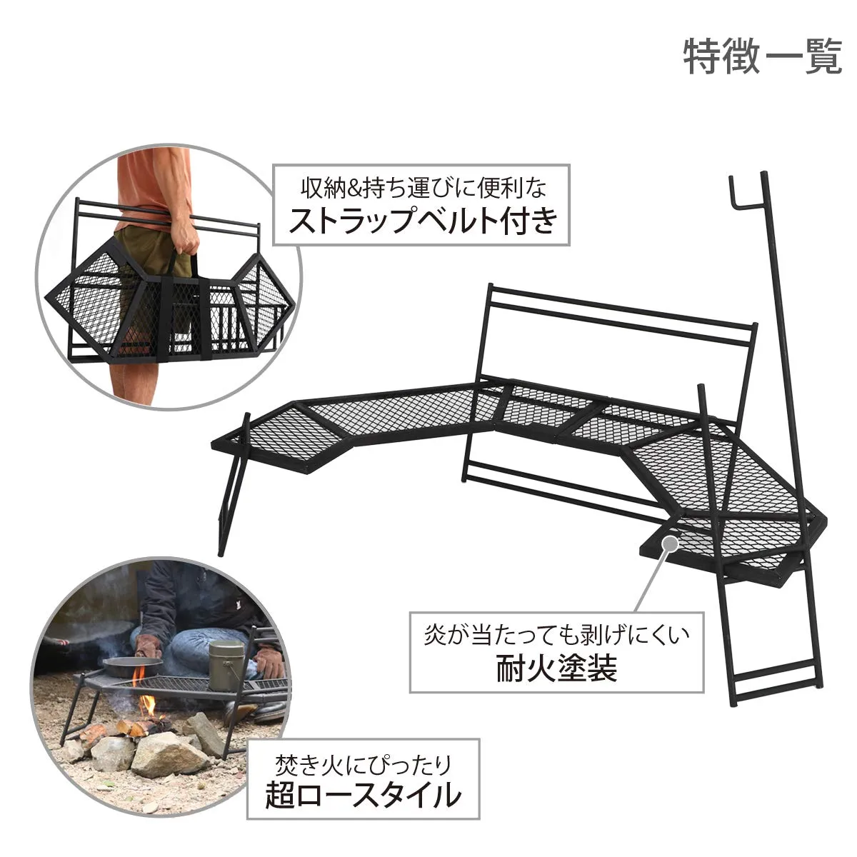 プレートには3mm厚の鉄を使用しており、焚き火の上で使用することができます。フライパンや鍋を置いてそのまま調理可能です。
