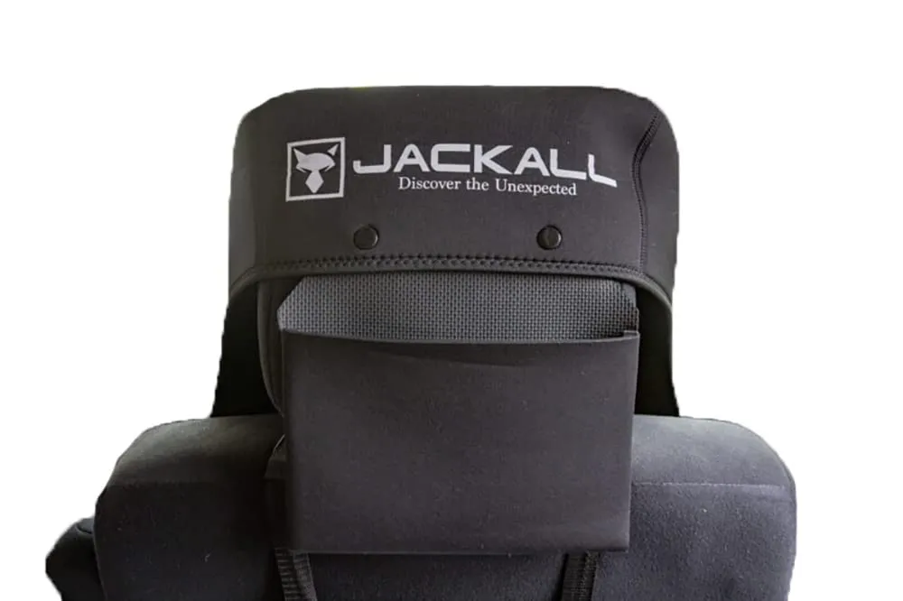 ヘッドレスト部分、サイド部分には付属のポケット(2つ付属)をお好みで装着できる仕様となっており、レインやウェーダーのポケットから取り出した小物を収納することが可能。