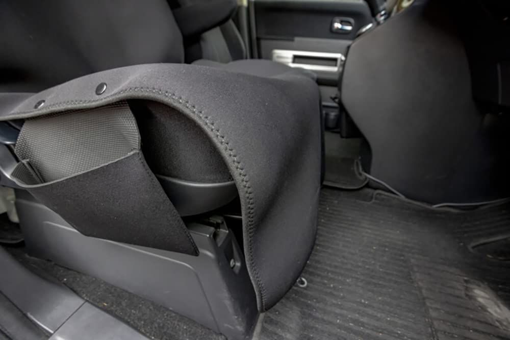 フィールドからフィールドへ。車のシートに取り付けておくことで、レインウェアやウェーダー等を着用した状態でも気兼ねなく車に乗り込むことができます。