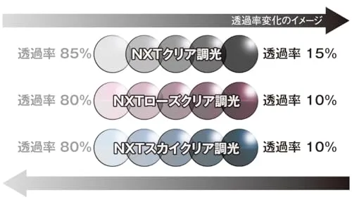 標準付属レンズカラー(可視光線透過率):NXTスカイクリア調光(80%~10%)