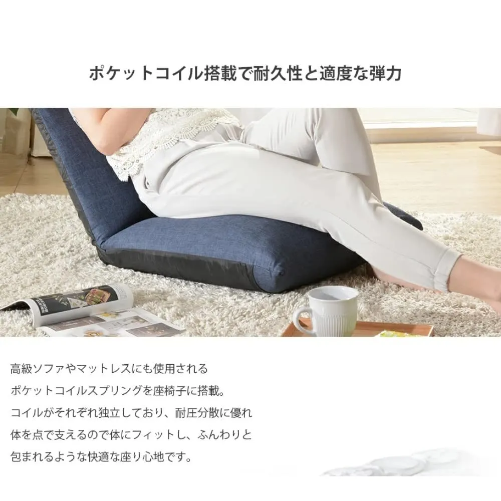 ハイバックで男性でもしっかり頭部までサポートできる。座面はポケットコイル仕様でへたりにくい。