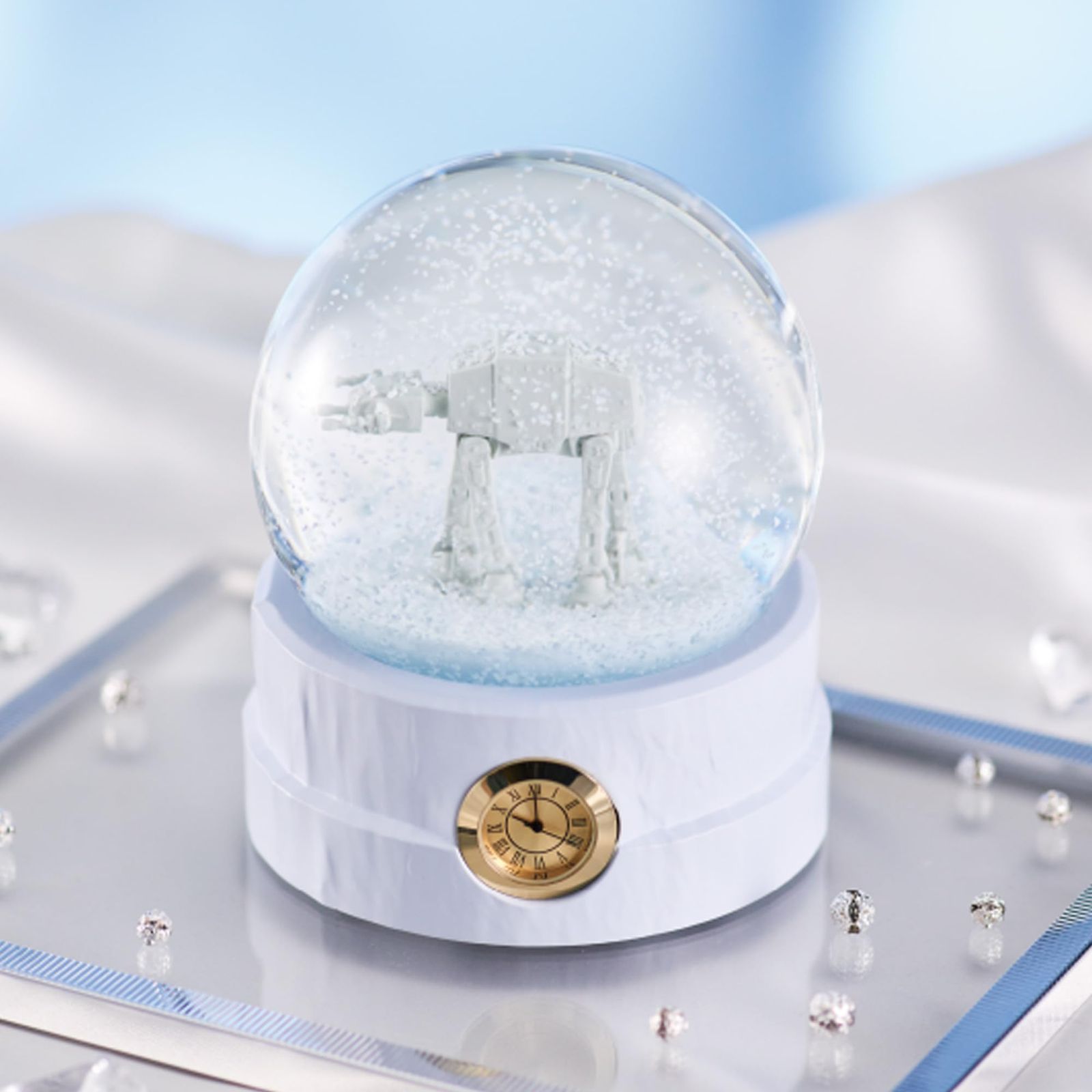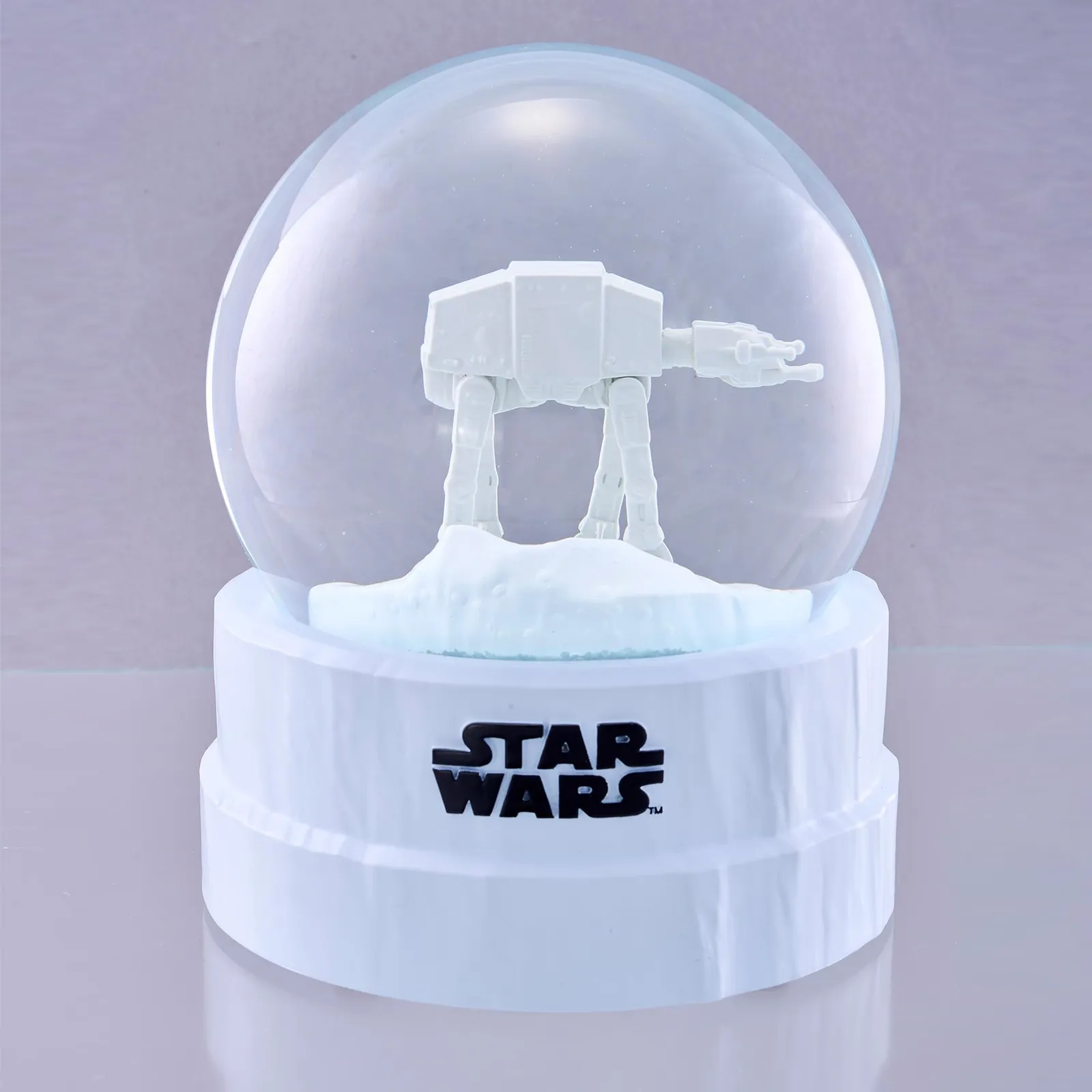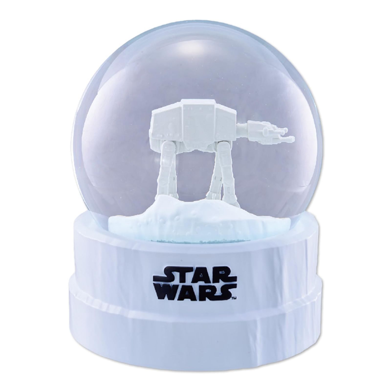 STAR WARS/ギミック付スノードーム (AT-AT(彩色Ver.)) 雪原を歩行するAT-ATの姿をドームの中に再現。 ドーム内を舞い散る白粉が極寒の雪舞シーンを演出します。 (C) & TM. Lucasfilm Ltd.