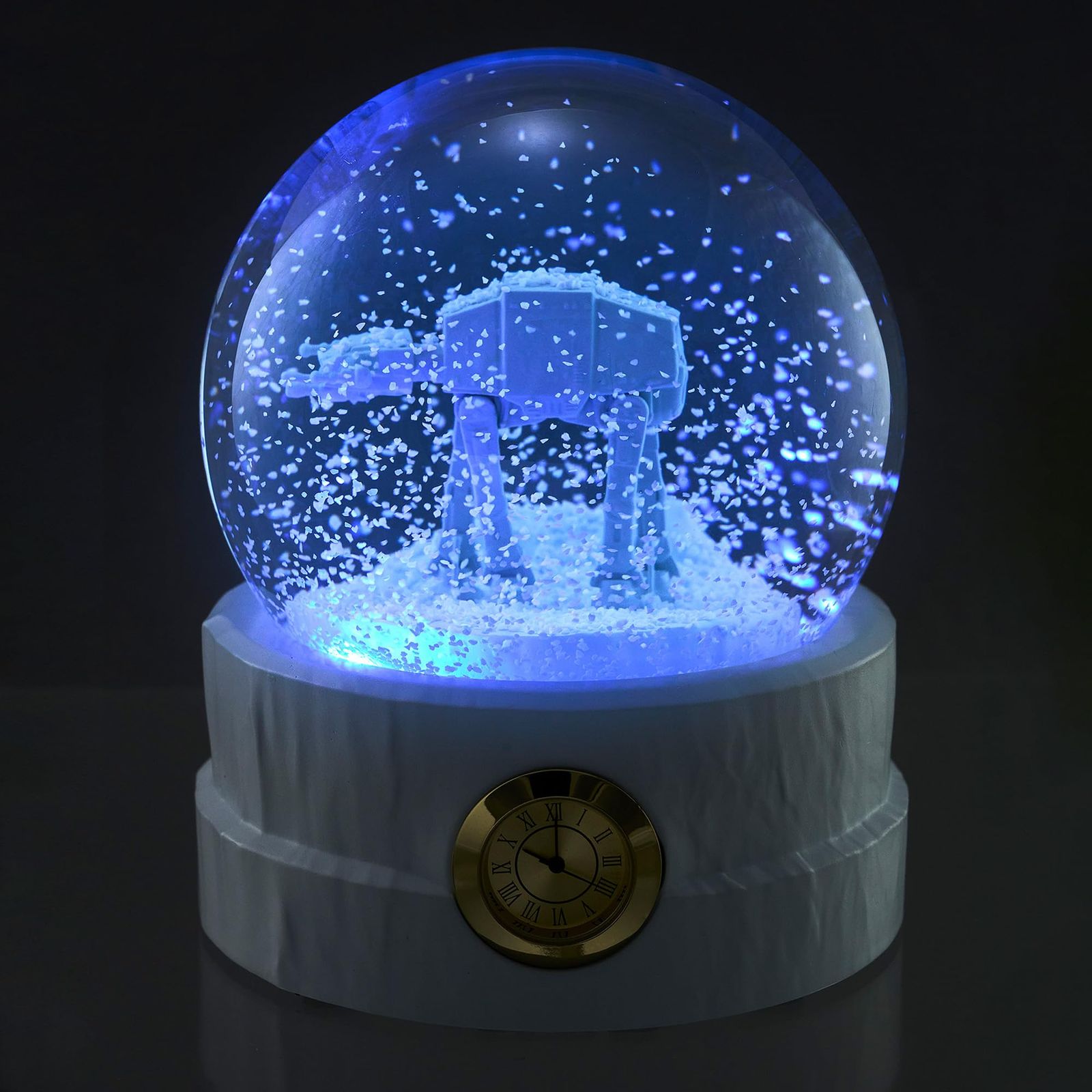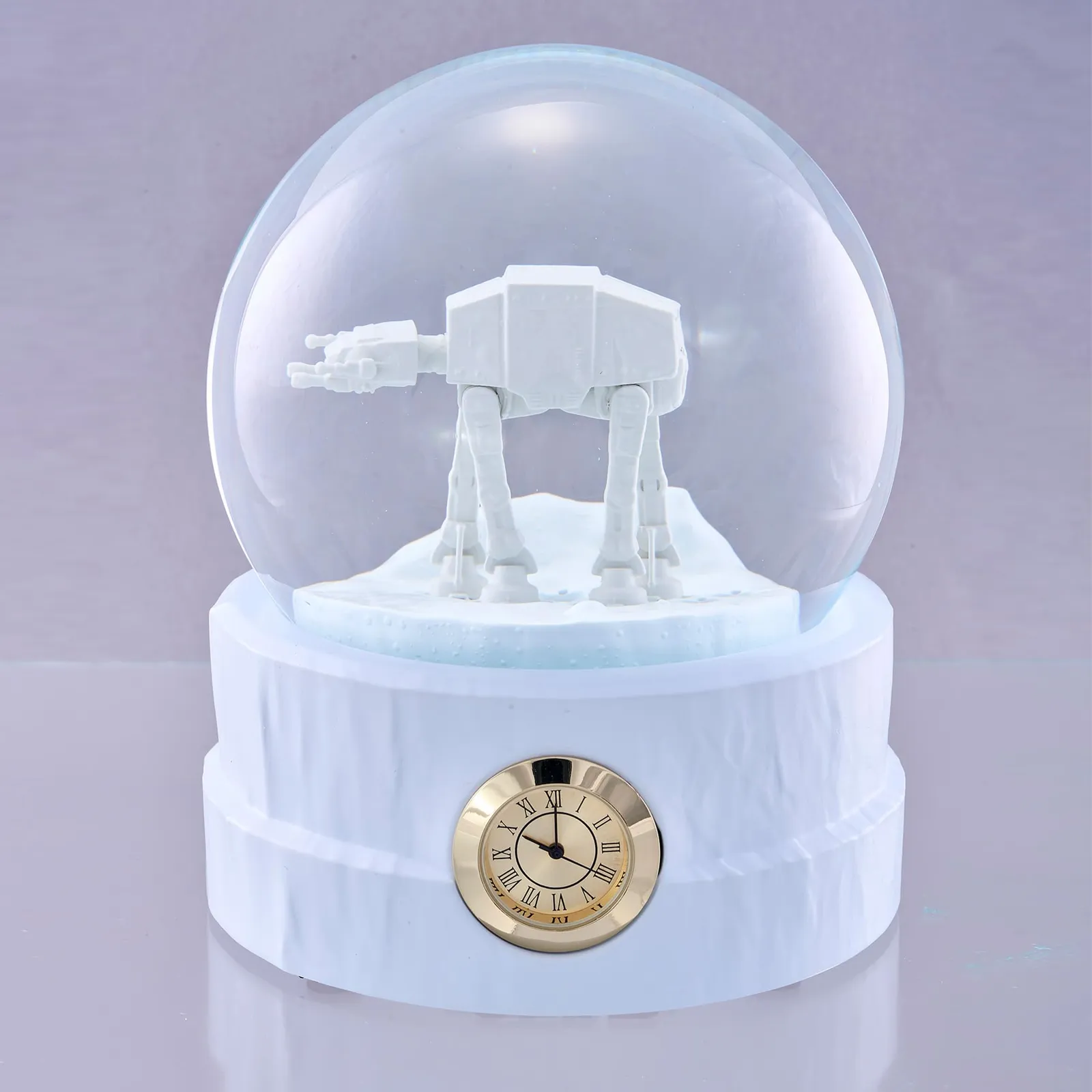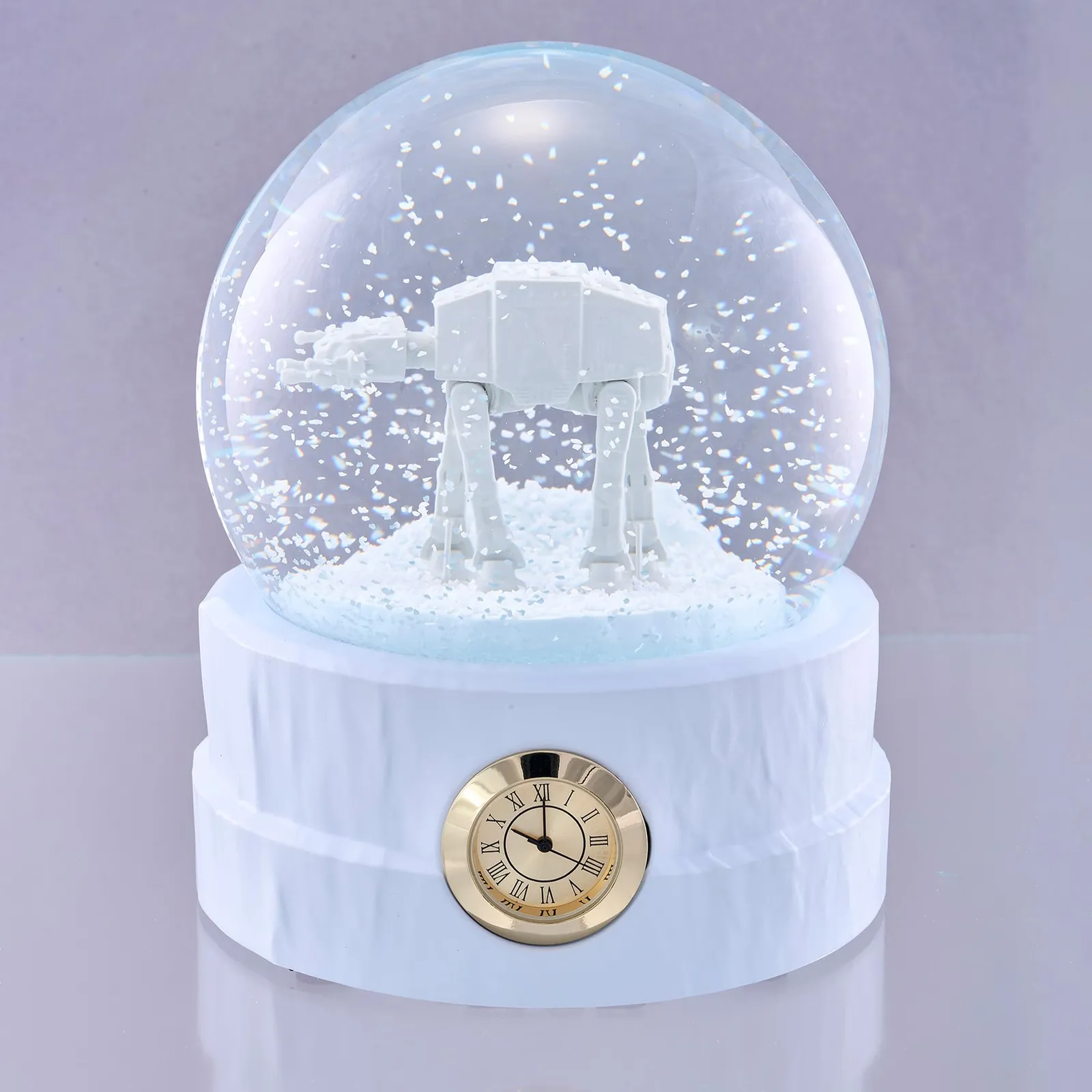 STAR WARS/ギミック付スノードーム (AT-AT(彩色Ver.)) 雪原を歩行するAT-ATの姿をドームの中に再現。 ドーム内を舞い散る白粉が極寒の雪舞シーンを演出します。 (C) & TM. Lucasfilm Ltd.