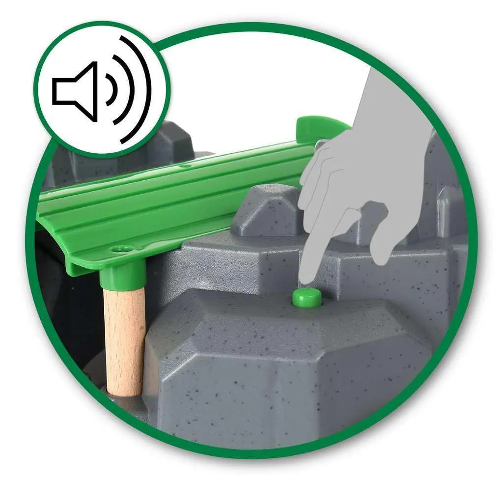 【2つのレイアウトで楽しめる】山の中でレールが立体交差しているので、8の字レイアウトなどを作るときの中心部に使えます。山の上部は外して平面のレールのかぶせると、トンネルになります。トンネルの中を通過すると4種類のサウンドが鳴ります。