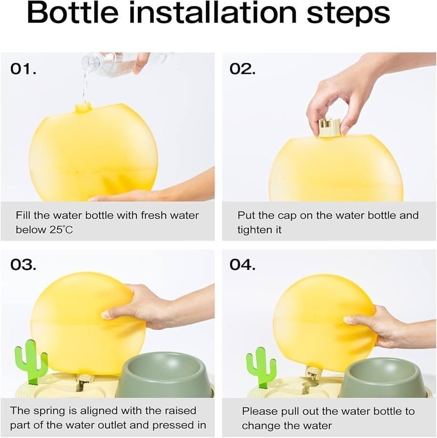 自動給水猫ボウル:サイフォン原理、自動給水、安定した水位、1,000ml容量のウォーターボトルは、家にいなくても猫や小型犬の5〜7日間の飲用ニーズを満たすことができます。猫がきれいな水を飲むことができます。ペットフードとウォーターボウルセットも取り外し可能で、お手入れも簡単です。