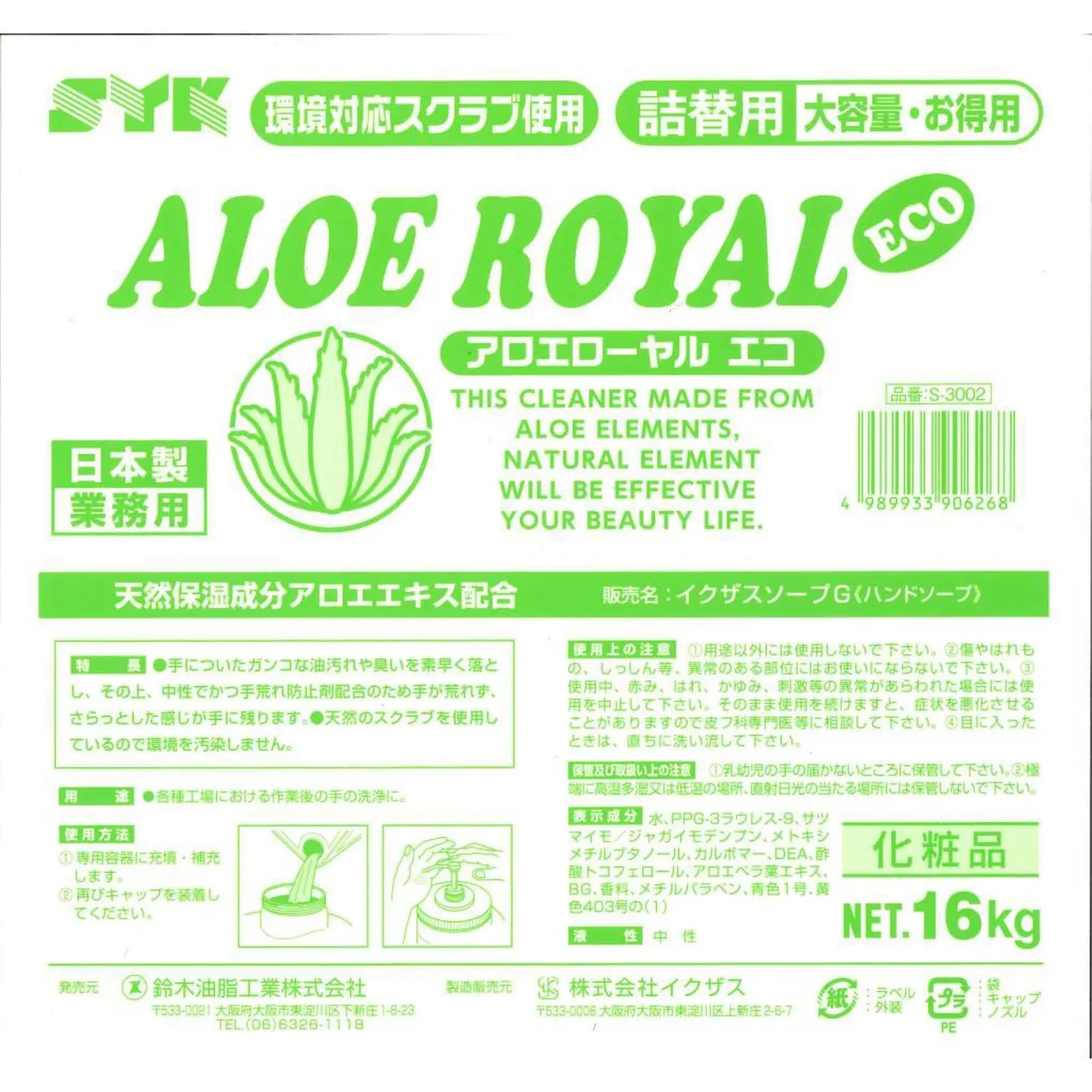 アロエエキス(保湿剤)配合で手肌に優しい