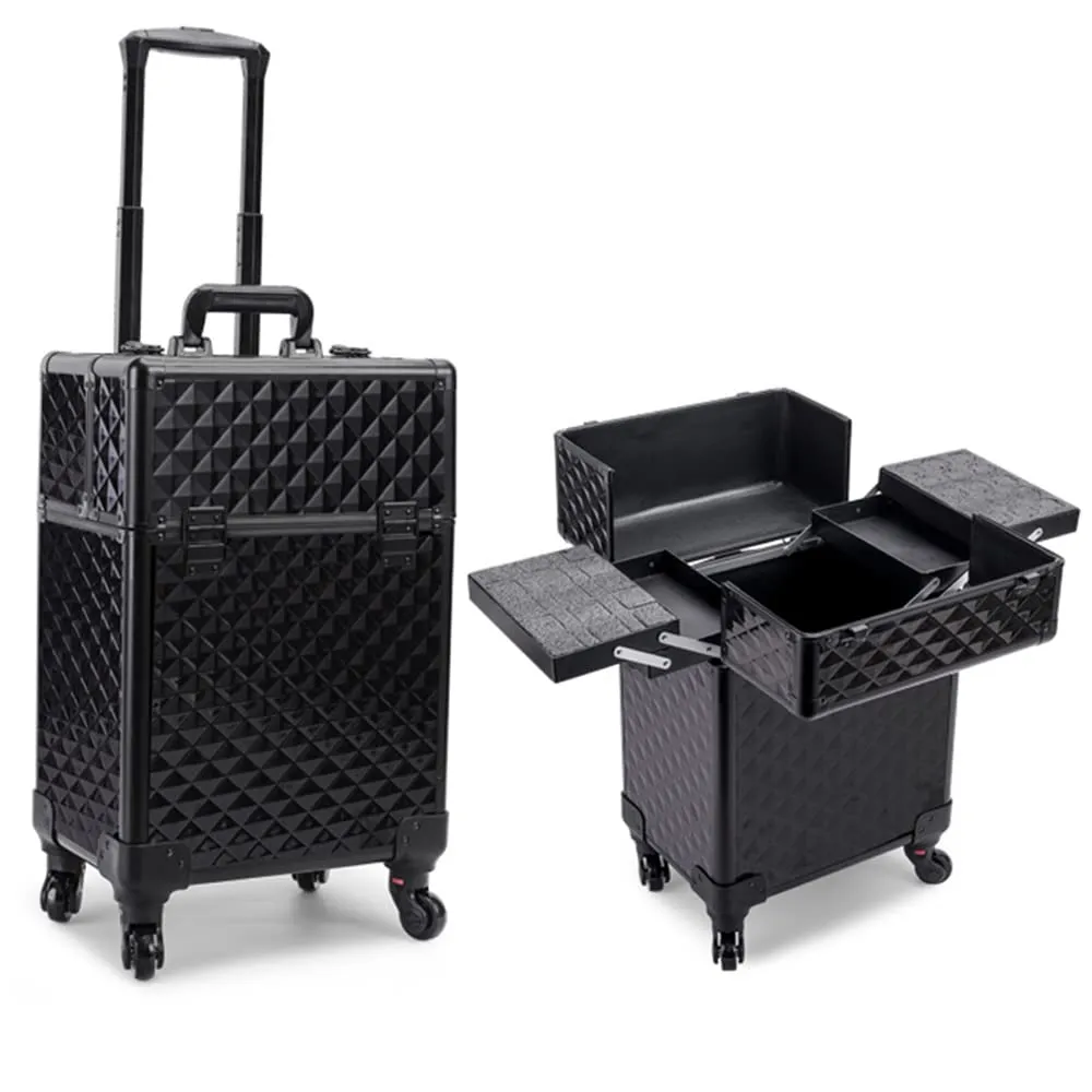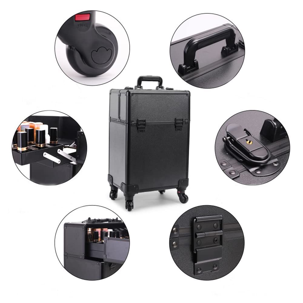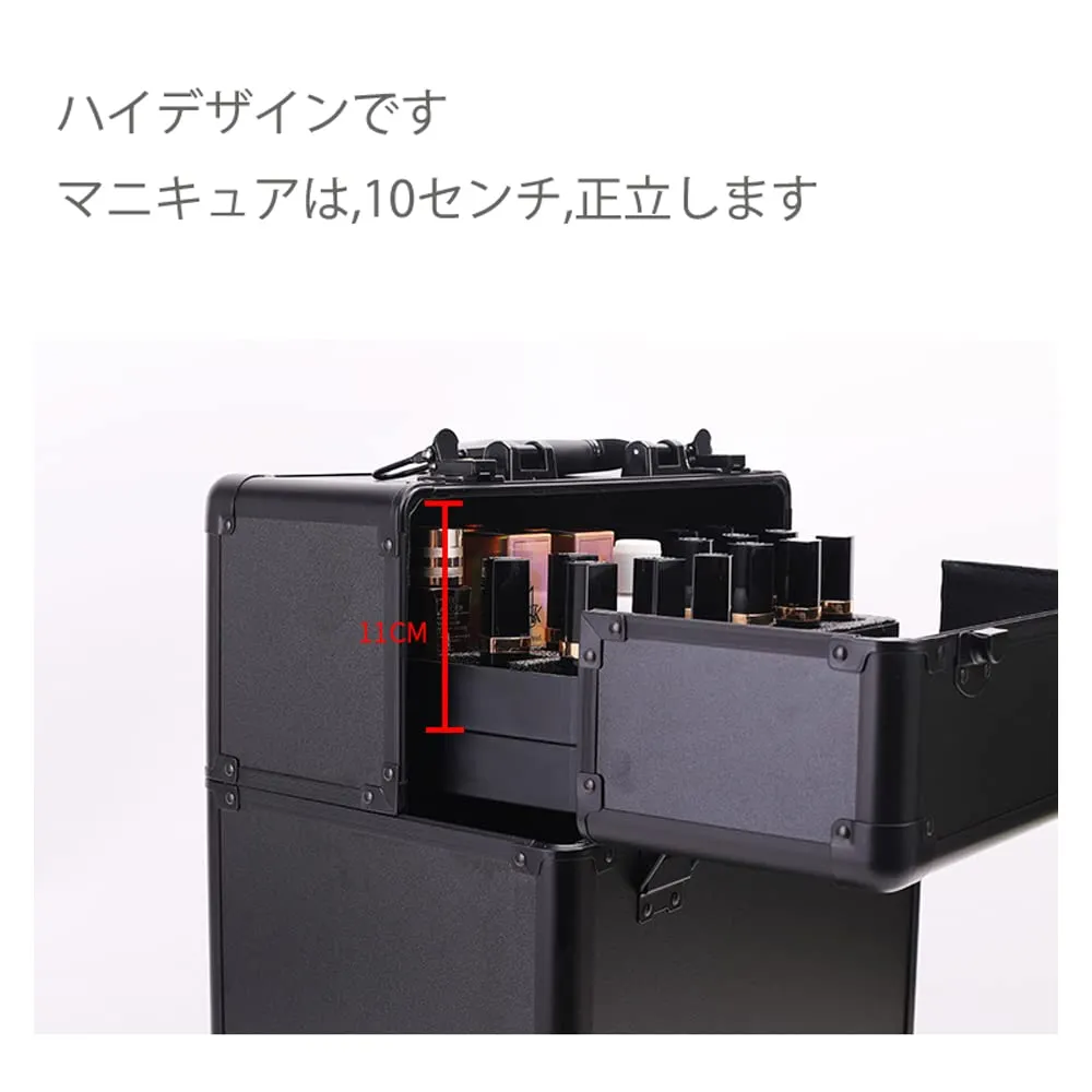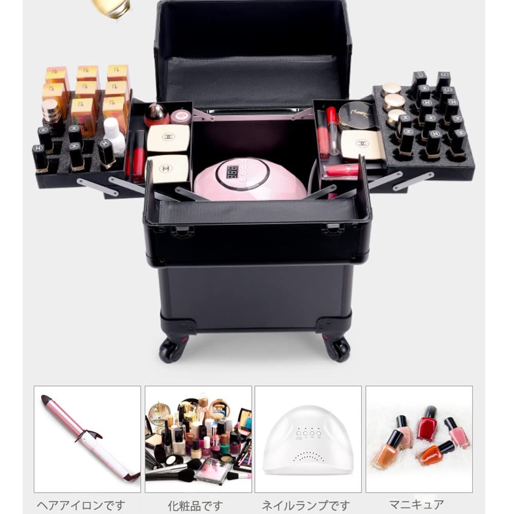 新品 メイクキャリーケース メイクボックス 大容量 プロ用 メイクボックスキャリーバッグ 多機能 仕切り キャスター付き 化粧品箱 メイク収納 メイク キャリーケース 美容師 ネイル ヘアメイク キャリーバック メイクバッグ (black)