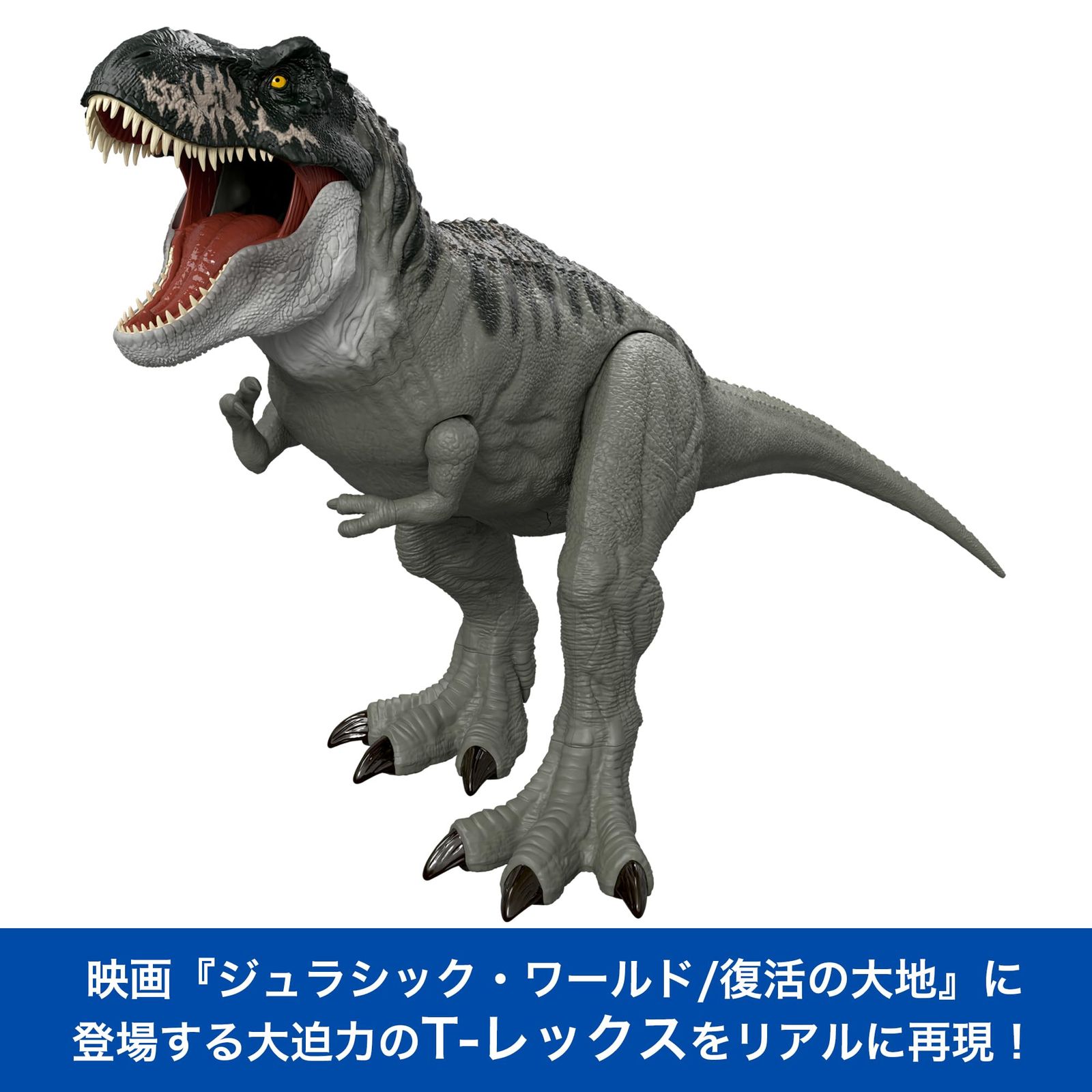 【内容】映画『ジュラシック・ワールド/復活の大地』に登場する全長約99cmの大迫力のスーパービッグサイズのT-レックス!