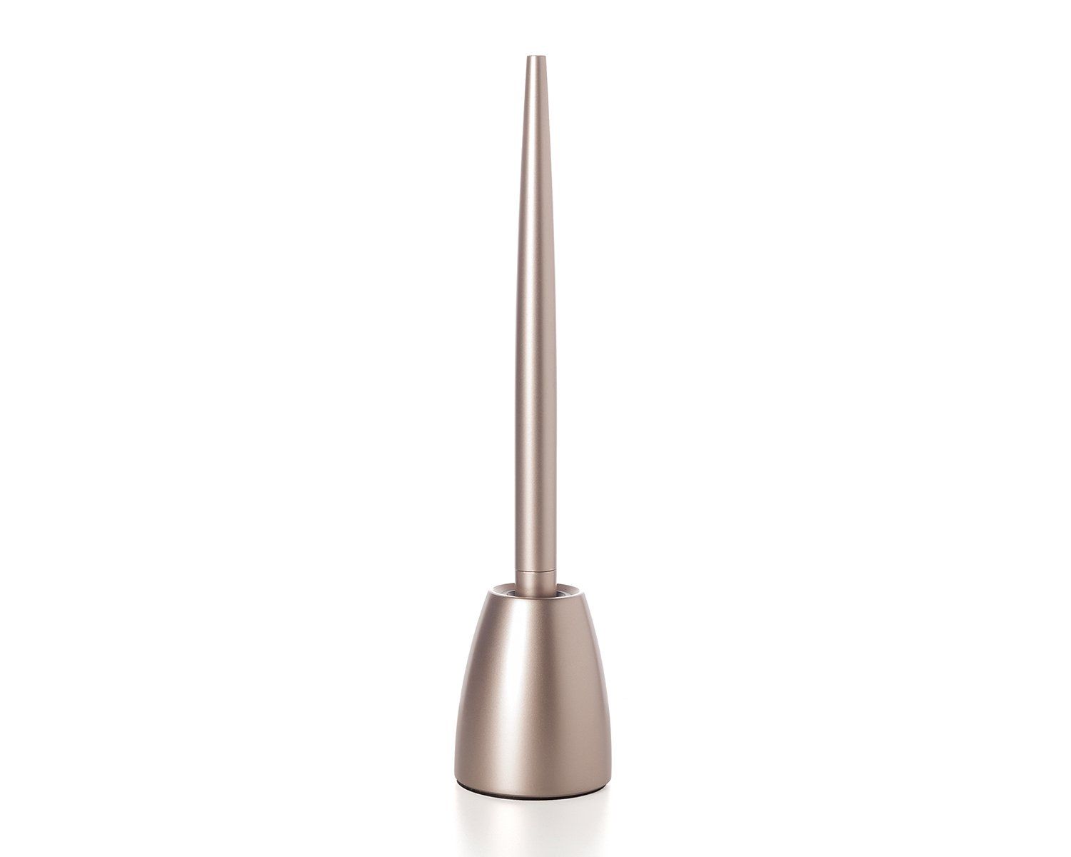 レクソンを代表するロングセラーモデルとして、オフィスの受付やホテルのフロント、レストランなど、さまざまな場面で長く愛されてきたボールペン。時代に合わせてデザインや素材を改良し続け、いまの完成形にたどり着きました。アルミニウム素材ならではのほどよい重みが、安定感のある書き心地を生み、手に自然に馴染むのが魅力です。ゆるやかな曲線を描くボディは、最も太い部分がグリップとなる設計。手にしっくりと収まり、筆圧をやさしく吸収してくれるため、長時間の筆記でも疲れを感じにくく、心地よく使えます。セットのペンスタンドも同じくアルミ製で、しっかりとした重量感があります。底面にはラバーが貼られており、滑りにくくデスクを傷つけないよう配慮されています。インクはカートリッジ式を採用し、市販の国内メーカー製レフィルに対応。デザイン性と実用性を兼ね備えた、永く使い続けられる一本です。