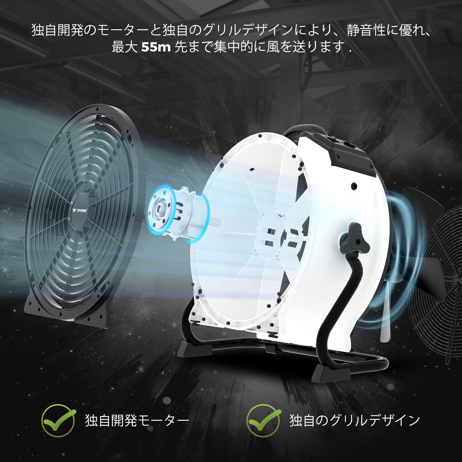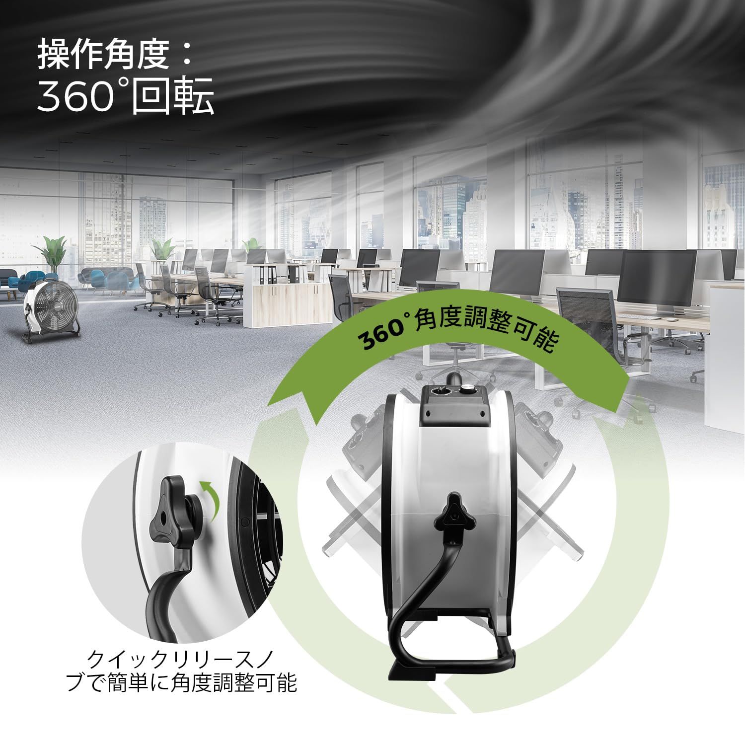 方向性エアフロー:頑丈なフレーム/ブラケット、360°多方向回転、エアフィンテクノロジーエアフィンテクノロジーは、連続的かつ方向性のあるエアフローを提供し、独自のグリル設計により、最大190フィートの集中エアフローを提供します。使用、空気循環は十分です。