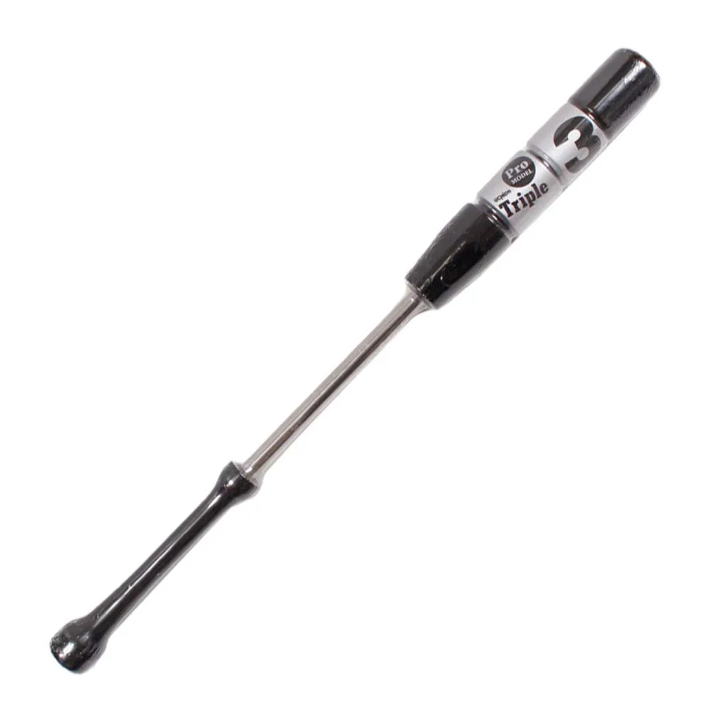 特徴は3つのおもり。おもりを3つにすることで、腕に感じる重さを軽減、これにより力まない振り出しと、ブレない下半身、開かないクセをつけ、強く速い打球を打てるようになります。