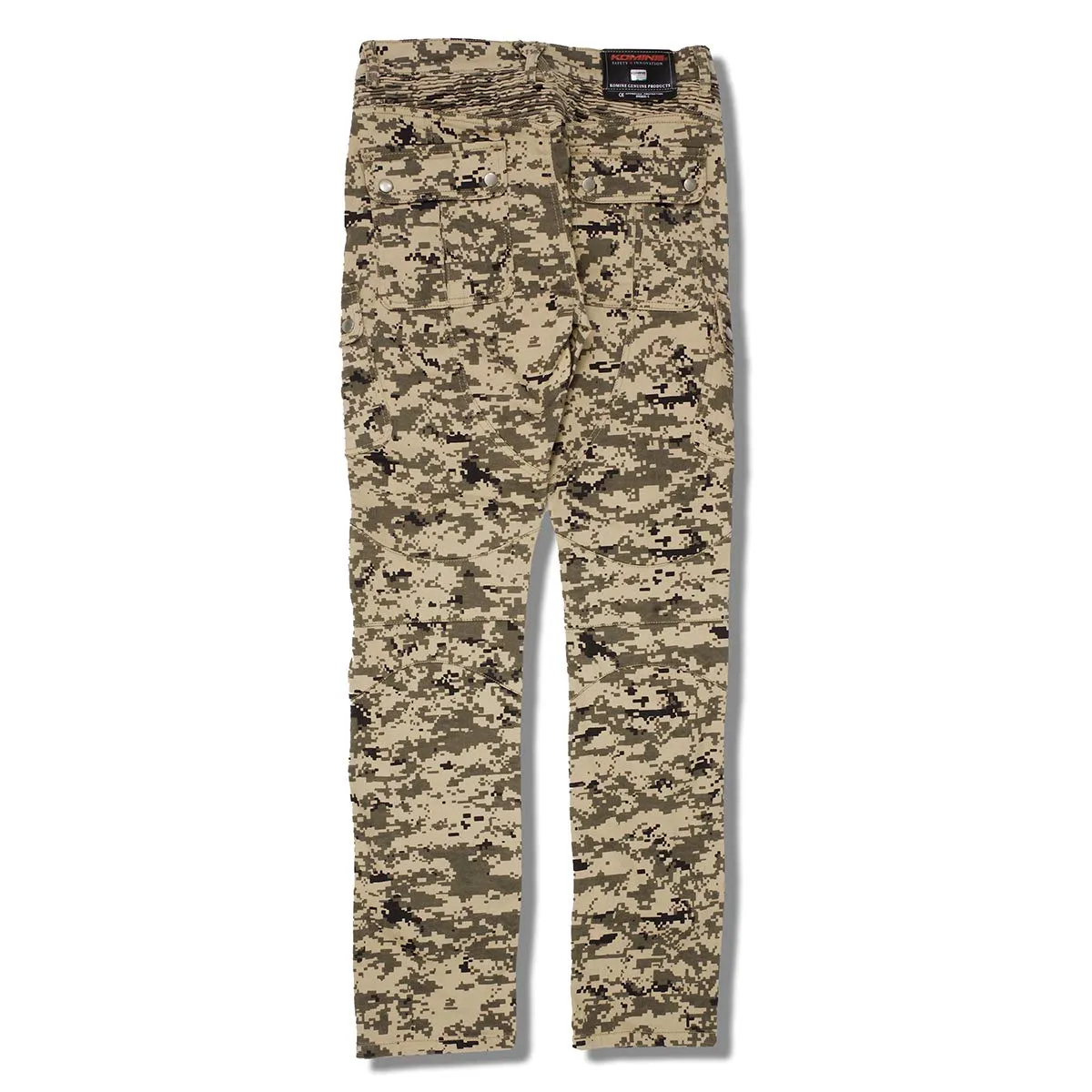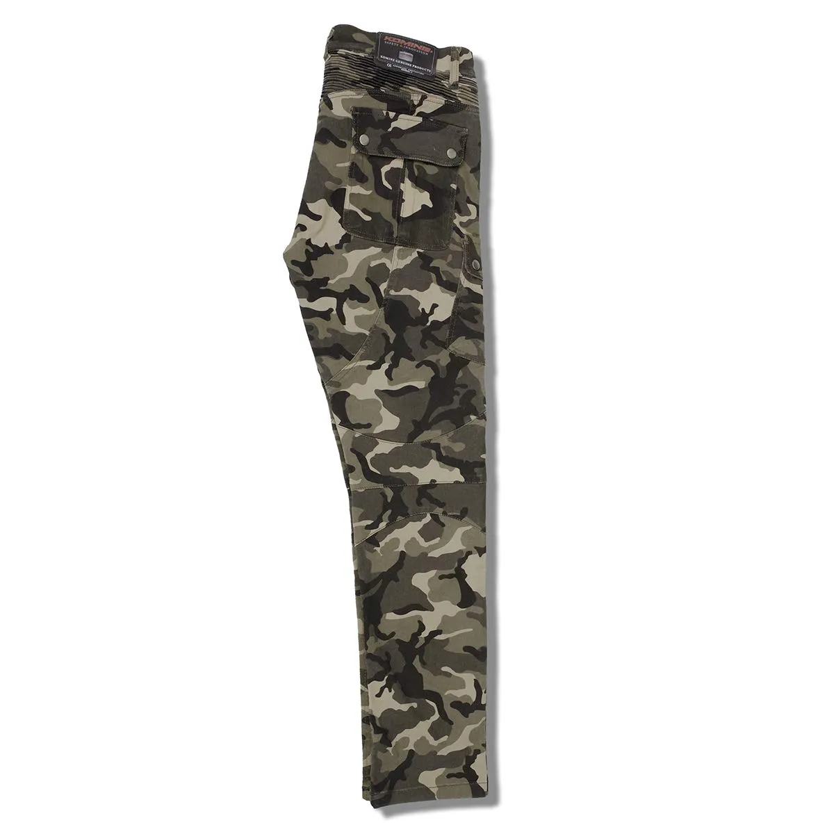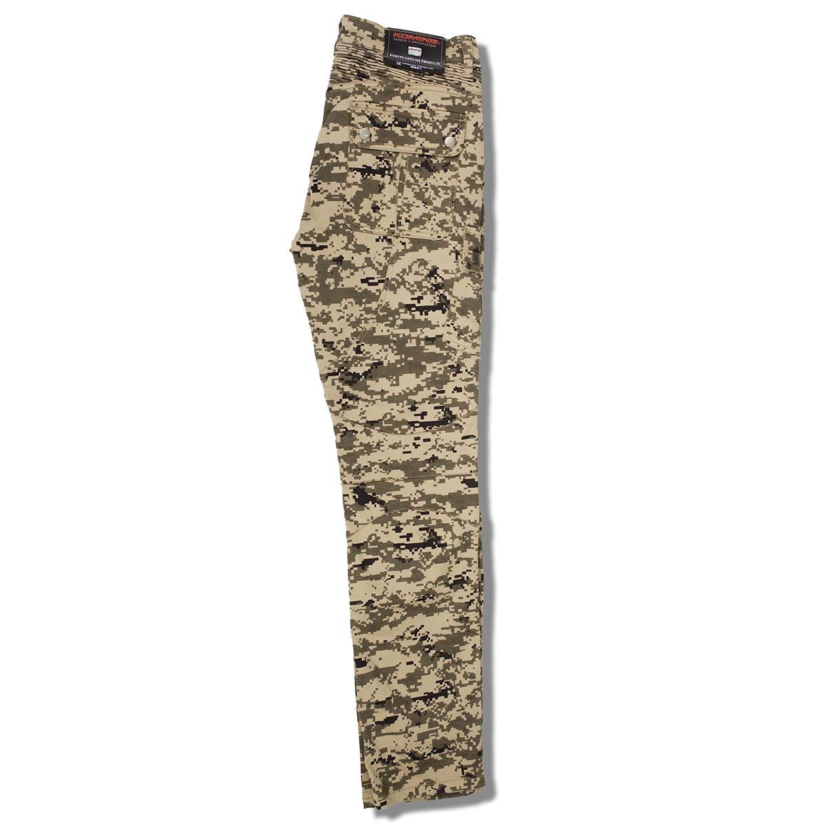 普段着感覚で着用できる、風合いの良いコットンカーゴパンツ。スタイリッシュな細身のパターンながら、ストレッチコットンを使用することで無理なく穿け、膝と腰に配置した伸縮ジャーリングによりライディング姿勢も楽々。動きやすい膝ソフトプロテクターはCE規格レベル2認証取得の本格仕様。