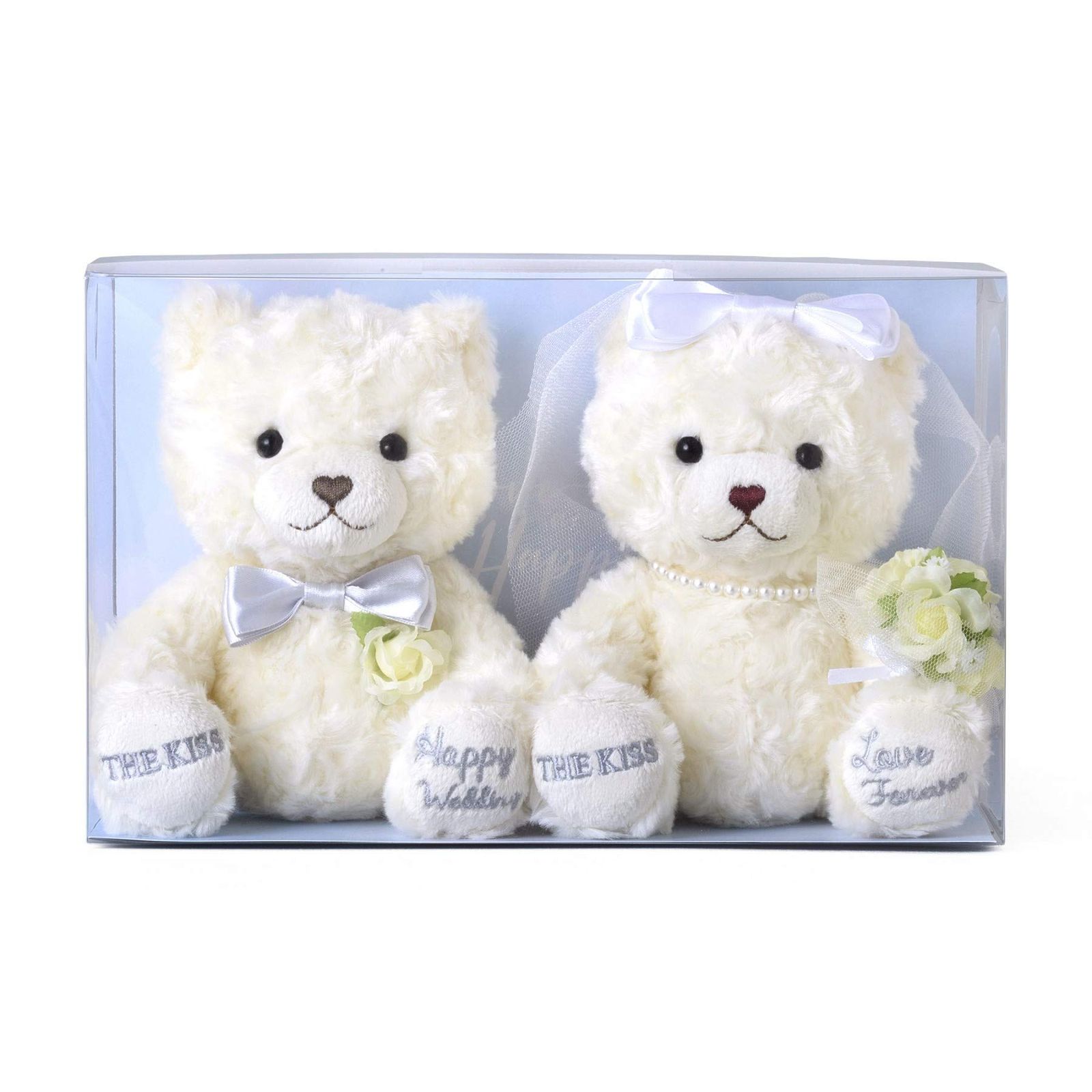 【商品説明】THE KISSのオリジナルベア「LOVE」と「HAPPY」が、ウェディングベアとして登場。ブライダルコスチュームに身を包み、お揃いのブーケとブートニアで仲良くコーディネート。足裏には、「Happy Wedding」と「Love Forever」の刺繍が施されています。結婚式の受付でゲストをお出迎えするウェルカムドールとしてはもちろん、新郎新婦へのお祝いの品としてもおすすめです。