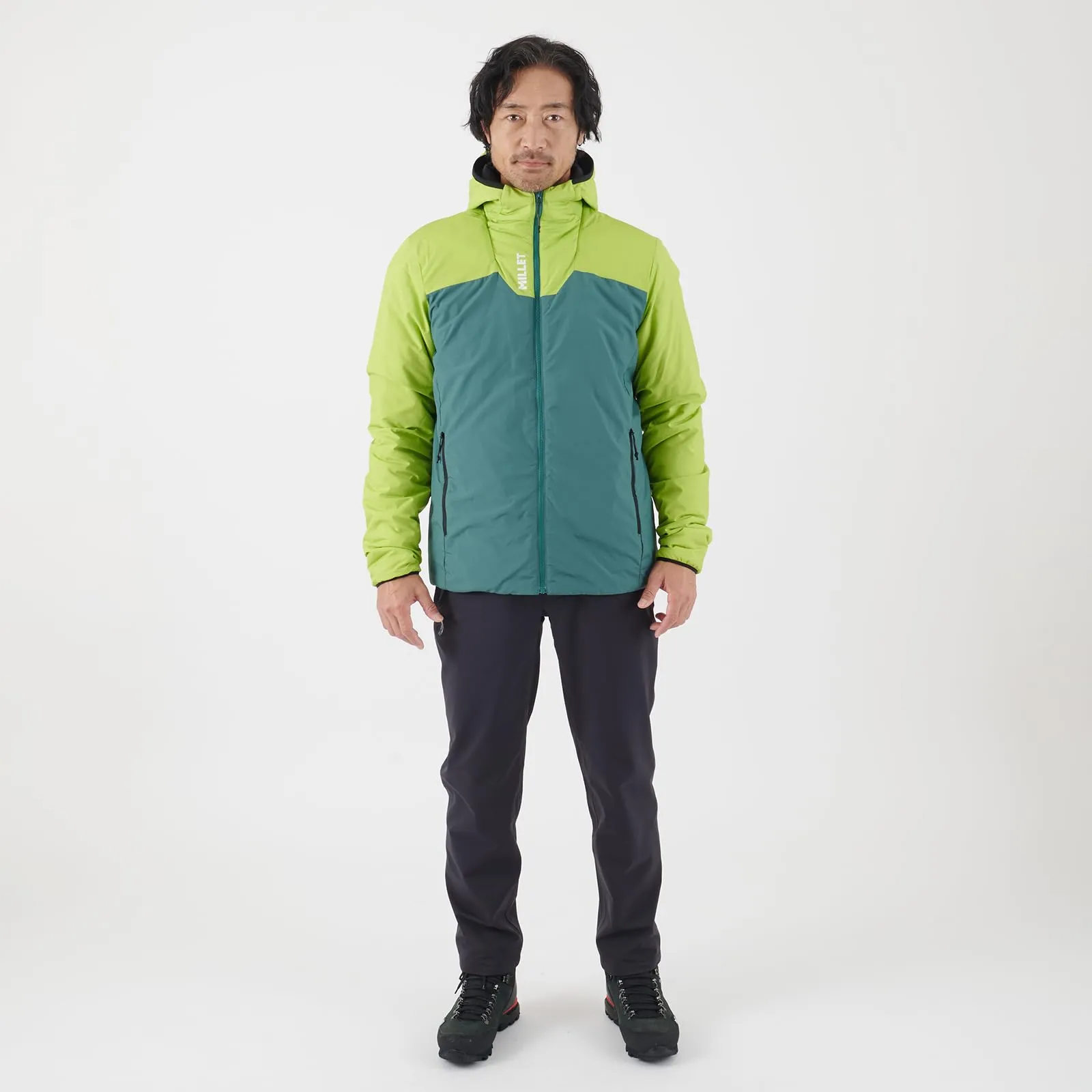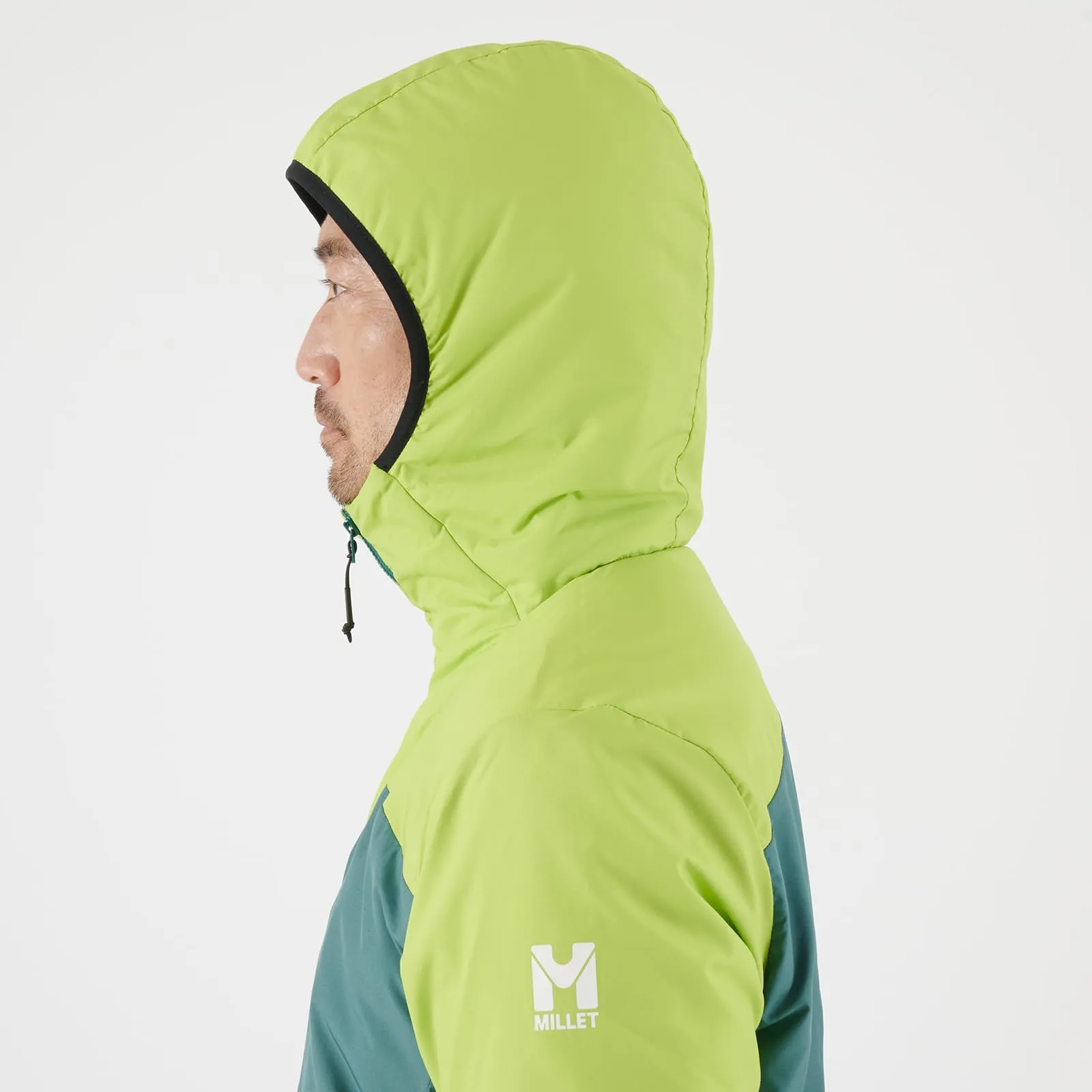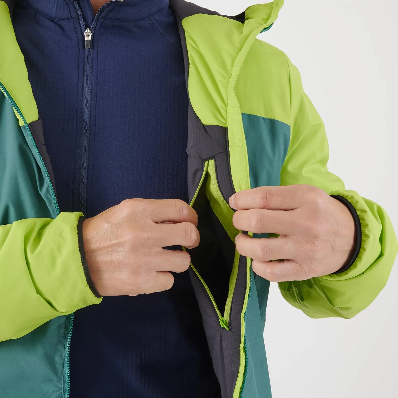 雪山登山をはじめ、冬のハードなアクティビティを想定してデザインされた軽量インシュレーションフーディ。軽量ながら高い保温性と湿気に対する強さを備えたリサイクル素材のプリマロフトR中綿を採用し、戦略的に厚みを変えて配置しています。伸縮性がありながら撥水性を備えた表地と、スリムなシルエットで体の動きを考慮した無駄のない立体裁断によって過酷な状況でのストレスのない自然な動きやすさを可能にしました。単体でアウターとして、あるいは寒い環境でのミッドレイヤーとしても着用可能です。