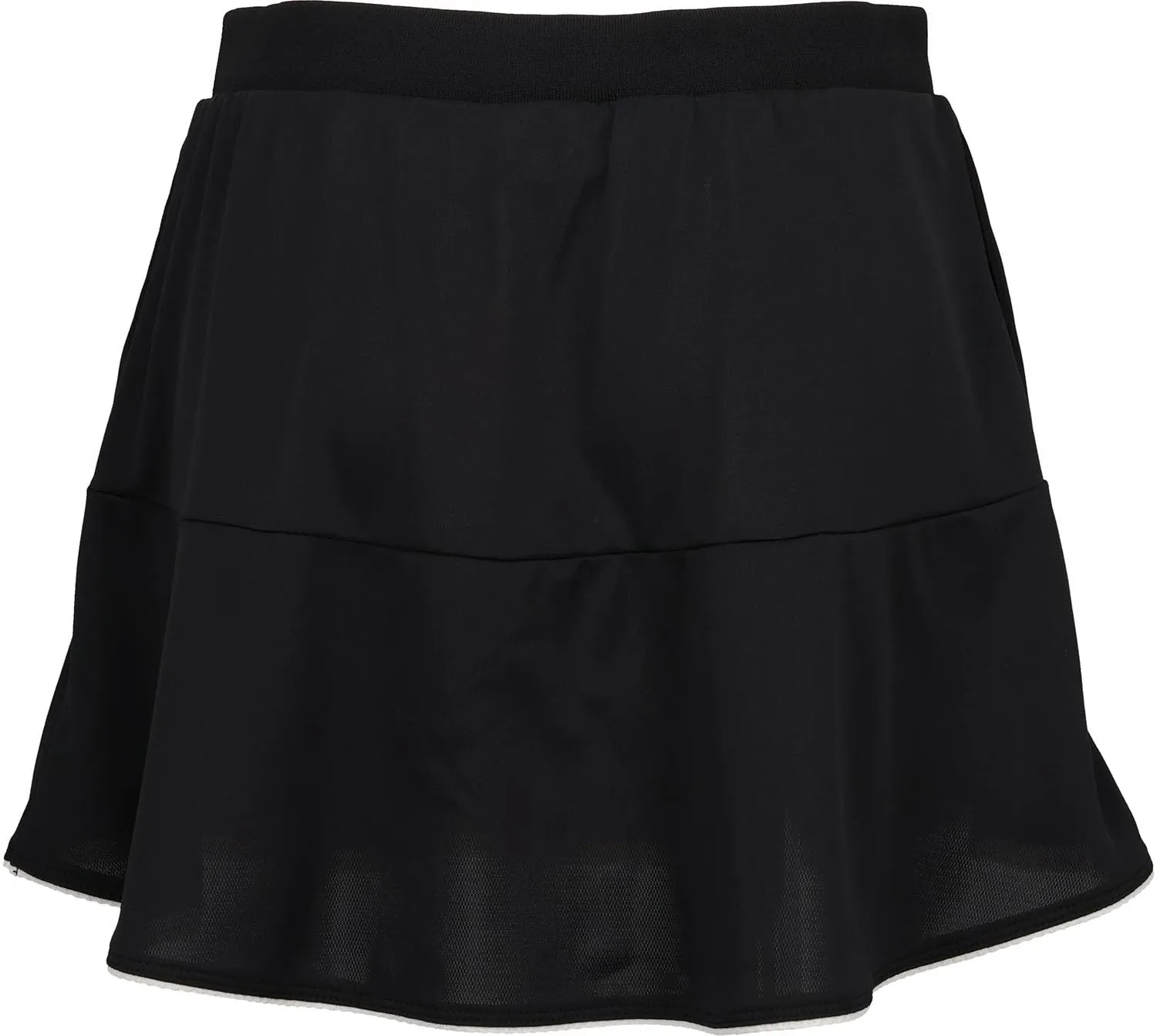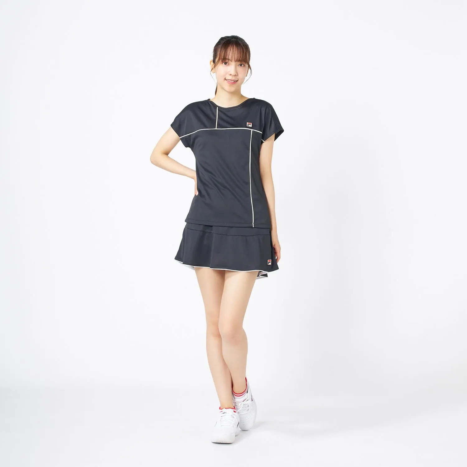 台形シルエットで裾にフレアーが広がるデザインです。裾にパイピングを施したモノトーン配色がシックに決まる大人の女性にむけてのモダンなコレクションです。