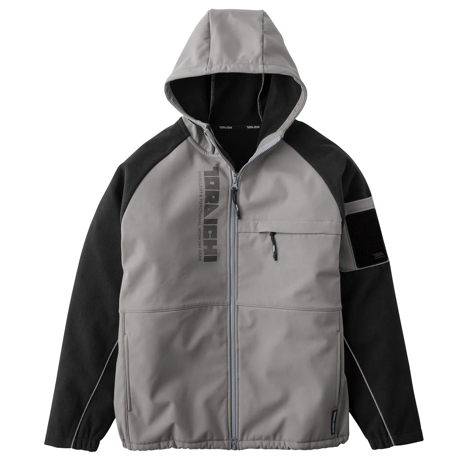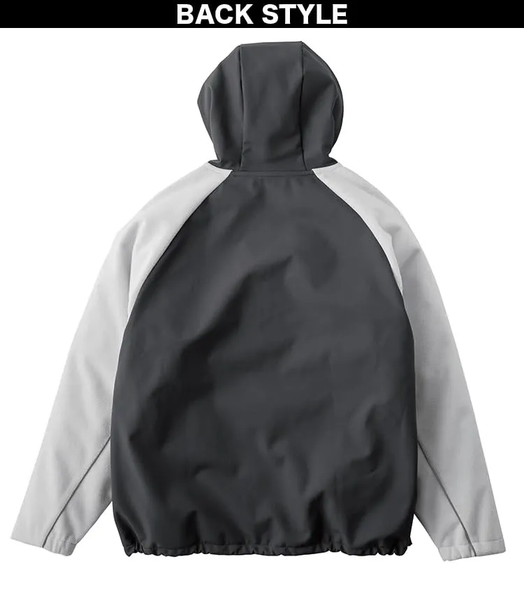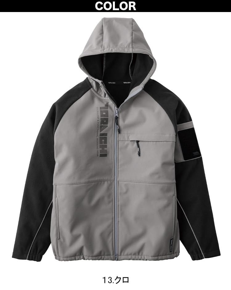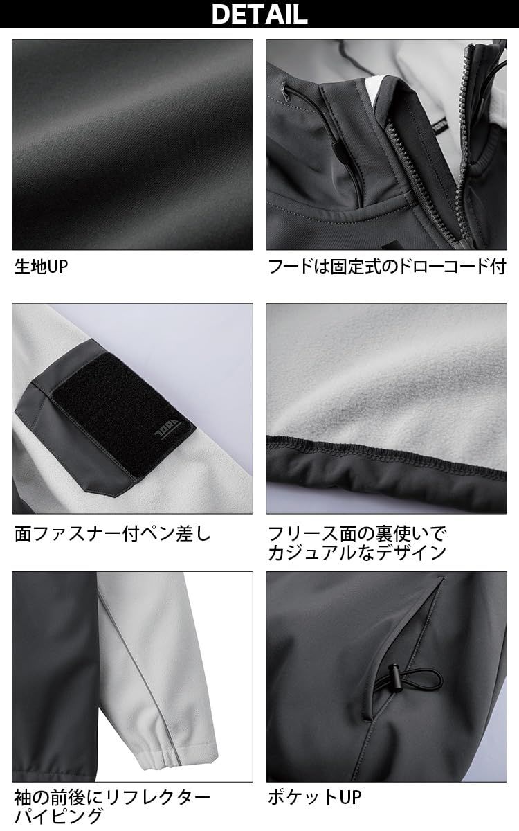 高密度タフタとフリースのボンディングで防風性と保温性も確保。切り替え部分に反射材のパイピングを用い暗所での視認性も確保。※ボンディング素材の為、ストレッチ性は軽微となります。