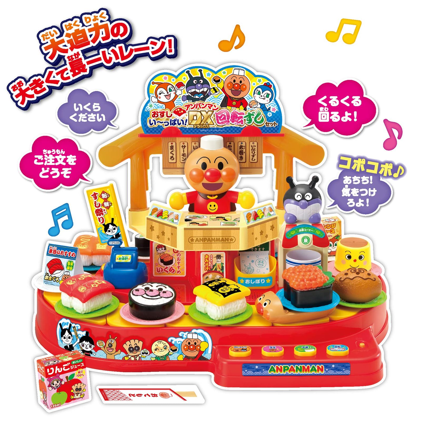 大きくて長ーいレーンをおすしが回る!アンパンマンとお寿司やさんごっこが楽しめるデラックスセット。