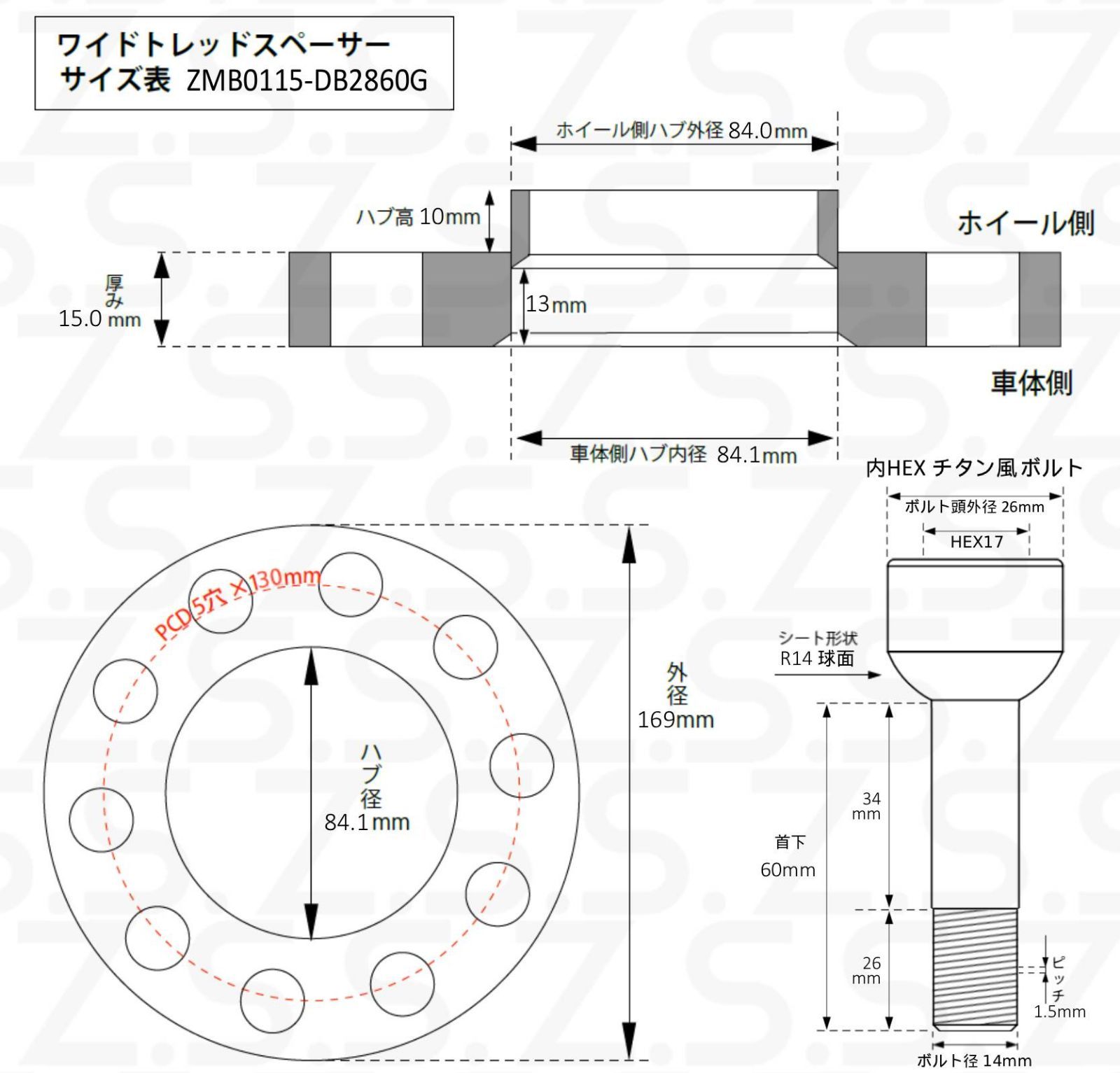 Z.S.S. AP 【チタン風ボルト付き】 Mercedes Benz G-Wagon W464 W463A 15mm PCD130 5穴 5x130 ハブ径 84.1φ スペーサー ベンツ Gクラス