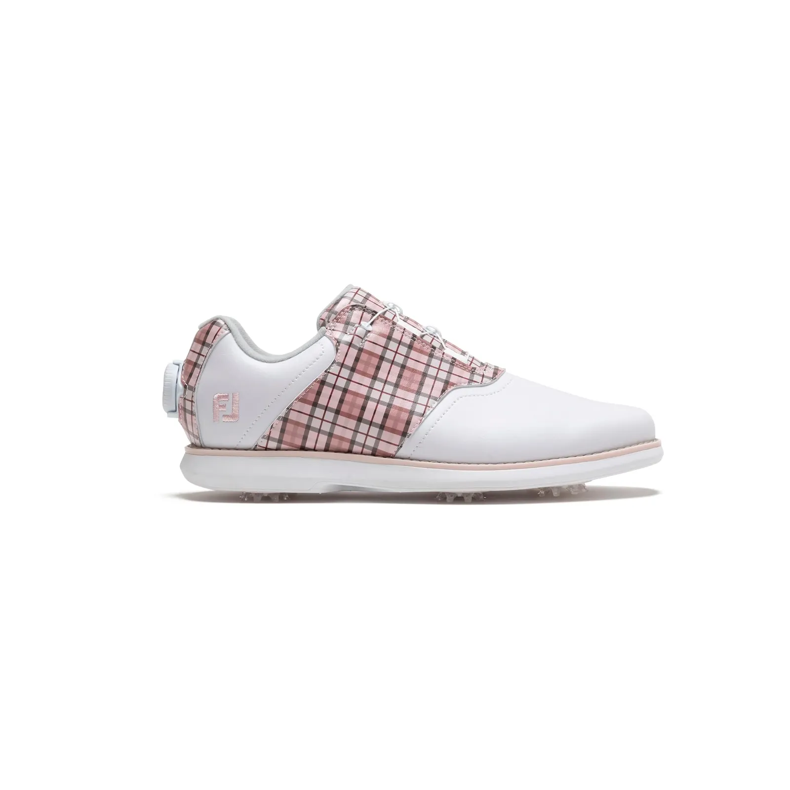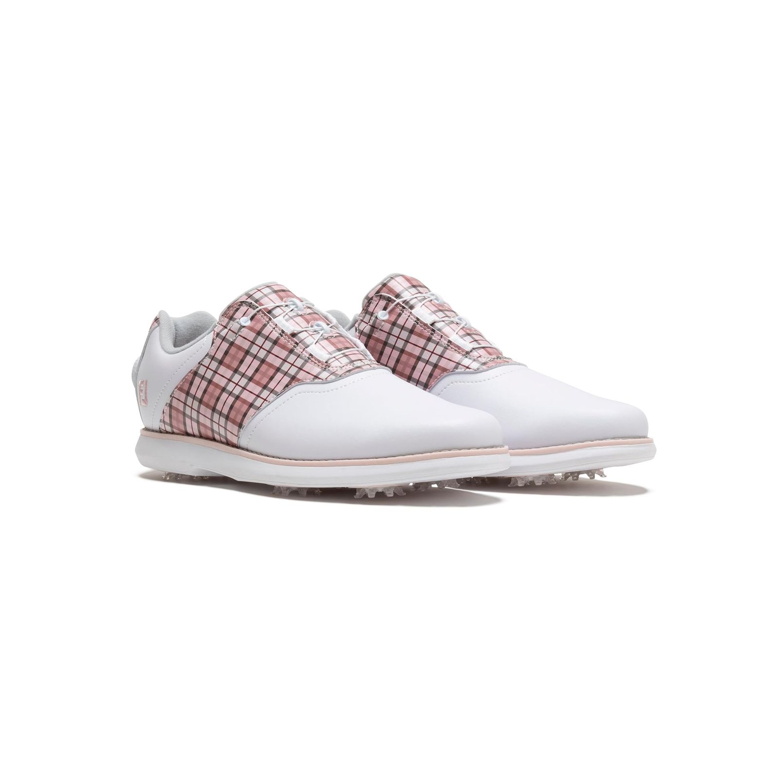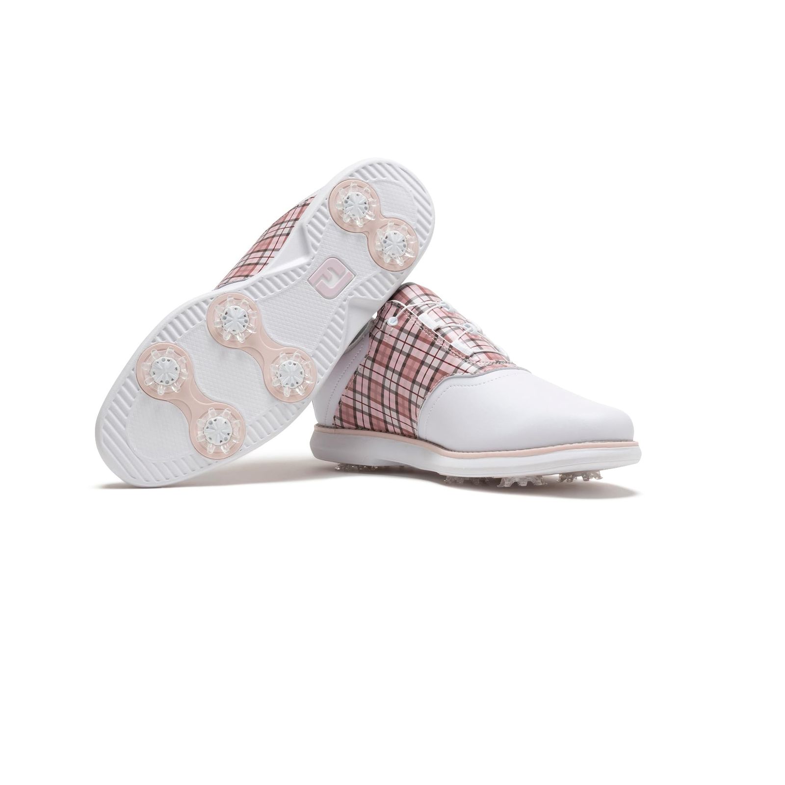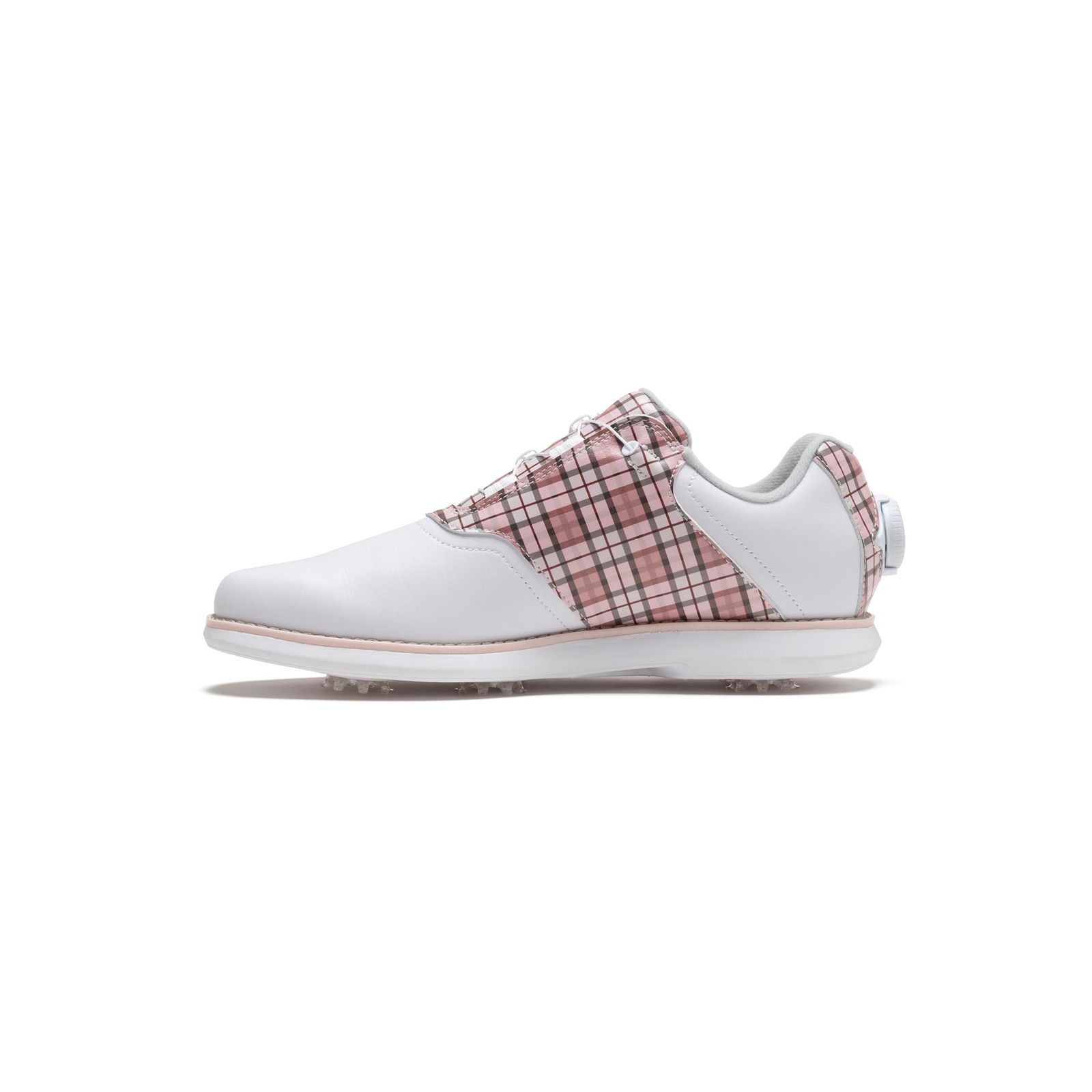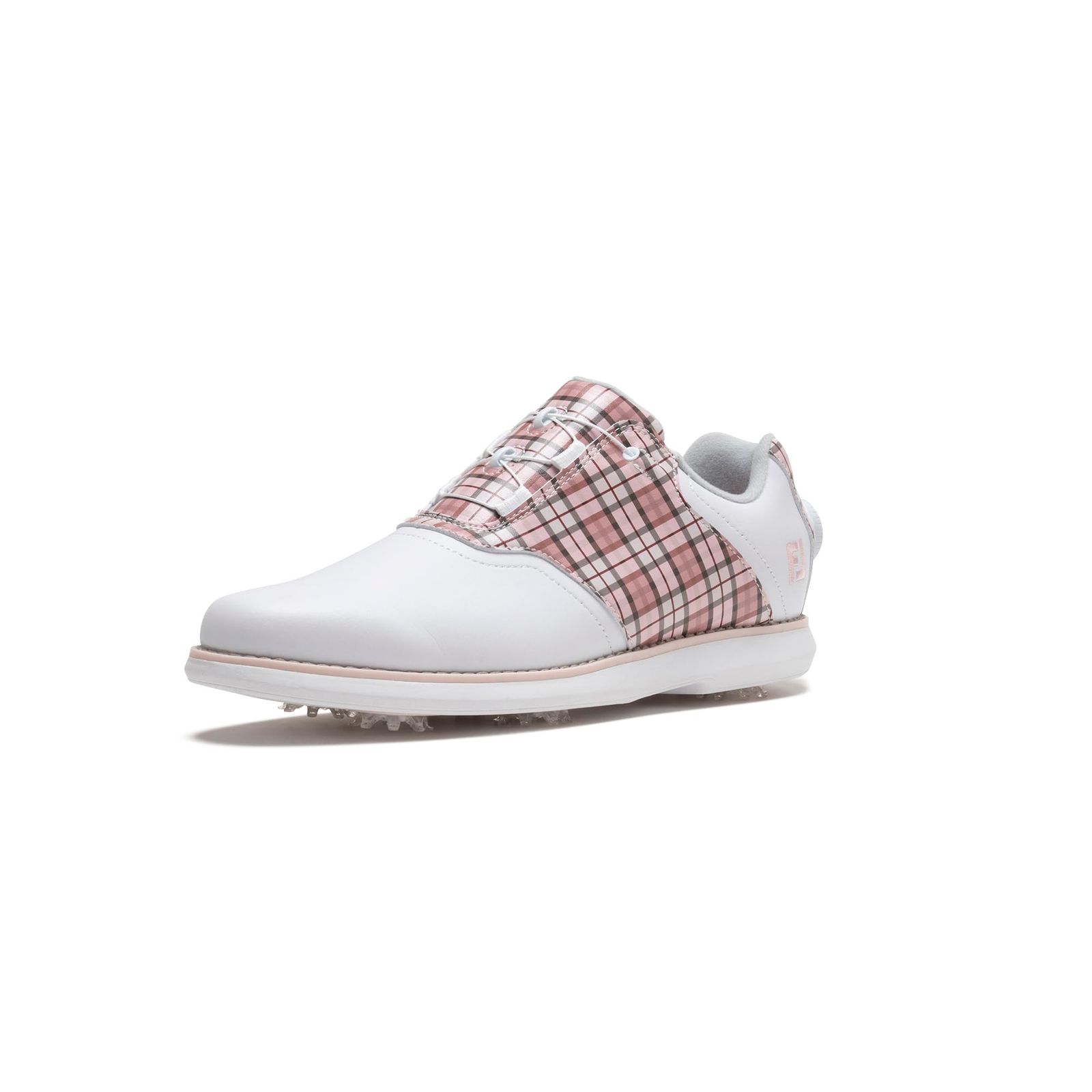 足元に華やかさを与える印象的なデザイン。グリップ力と快適性にもこだわったスパイクモデル。