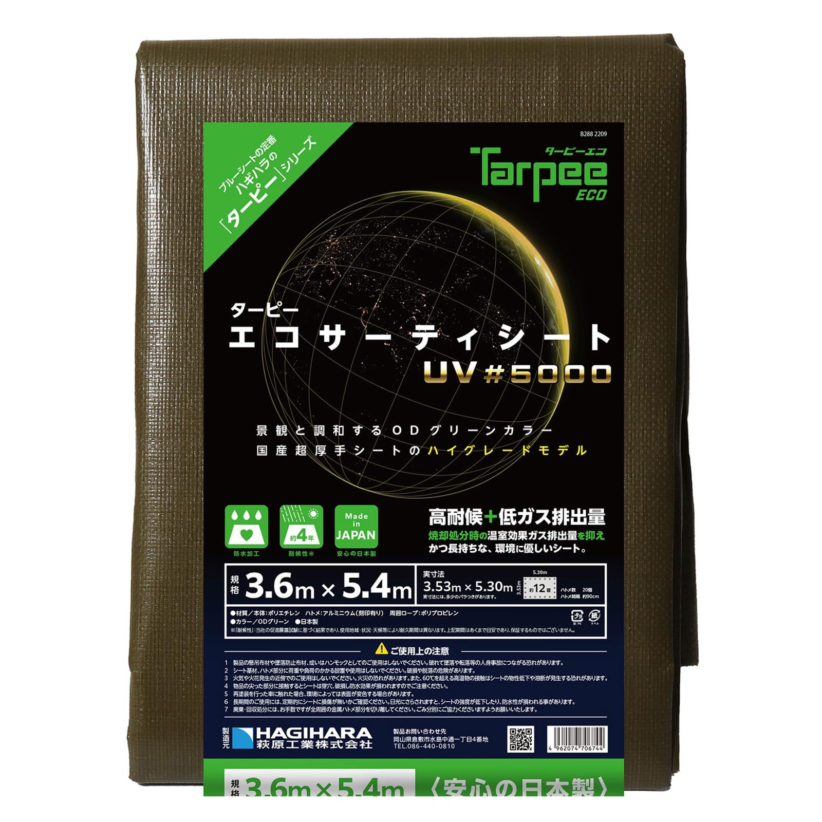 新品 萩原工業(Hagihara) 養生シート エコサーティ ODグリーン 3.6mx5.4m